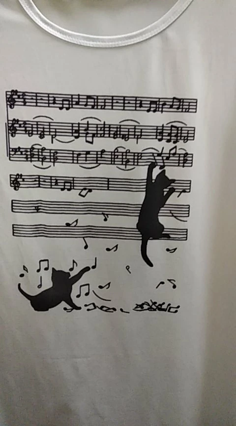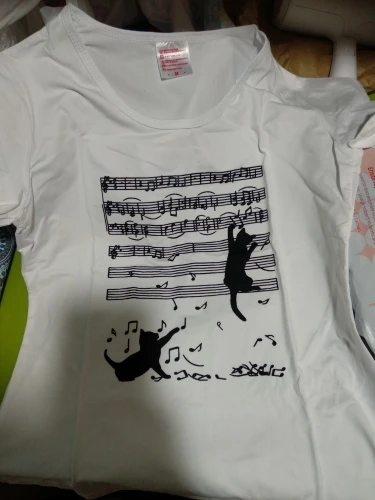 Новинка, Забавные футболки с принтом музыкальных нот с черной кошко...