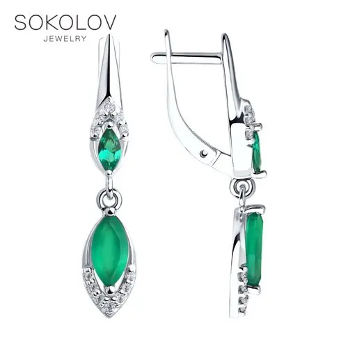 Серьги SOKOLOV из серебра с агатами и фианитами, Серебро, 925, Женские, Серьги 2022 тренд, Оригинальная продукция