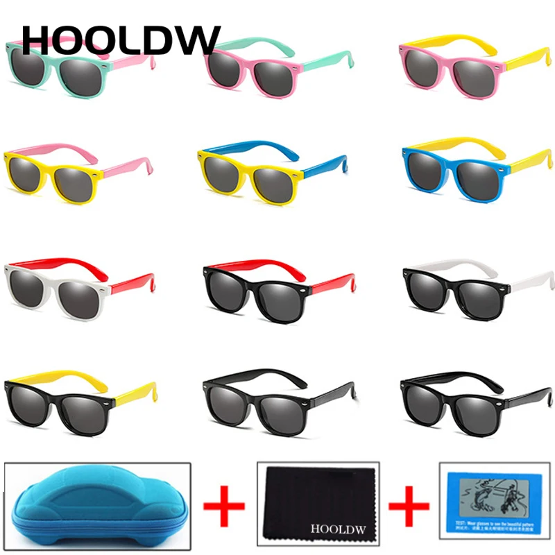 HOOLDW новые детские солнцезащитные очки, Поляризационные детские солнцезащитные очки для мальчиков и девочек, небьющиеся силиконовые солнцезащитные очки, детские солнцезащитные очки UV400