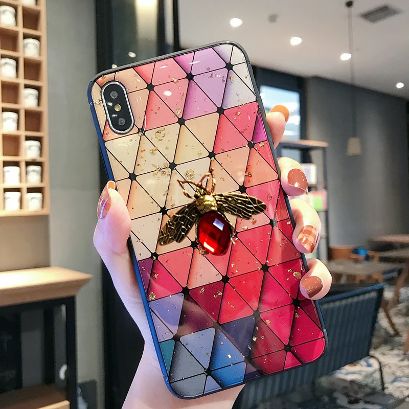 Чехол из эпоксидной золотой фольги с драгоценными камнями для Samsung Galaxy A51 A71 A10 A20S A30s A70 A12 A6 A8 A7 A9 J6 A22 5G 4G 3D bee, задняя крышка