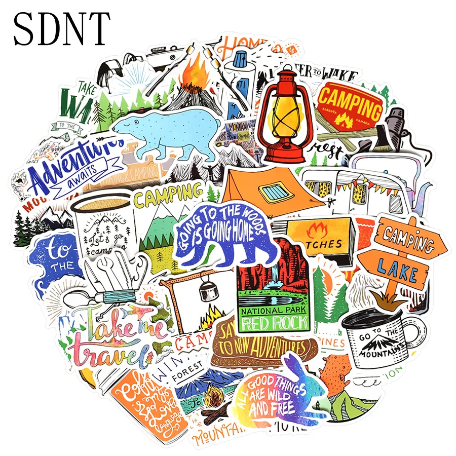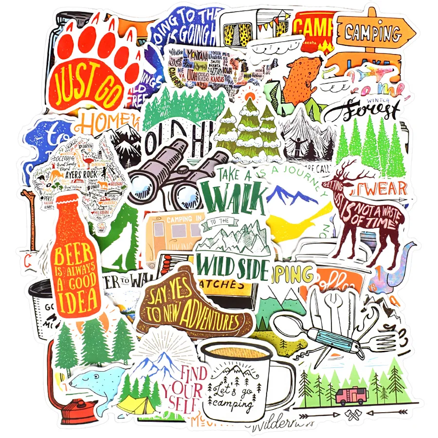 50 шт наклейки для кемпинга на открытом воздухе Приключения пейзаж из путешествия простые линии Мультяшные наклейки для DIY ноутбука чемодан скейтборд автомобиль