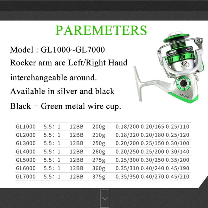 1000-2000-небольшая Рыболовная катушка, рекомендуется для удилищ, удилищ для плота, коротких морских удилищ, средних катушек 3000-5000, подходит для морских удилищ, 6000-7000 для больших рыболовных катушек, рекомендуется с морскими удочками.