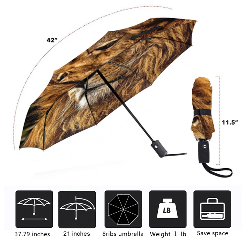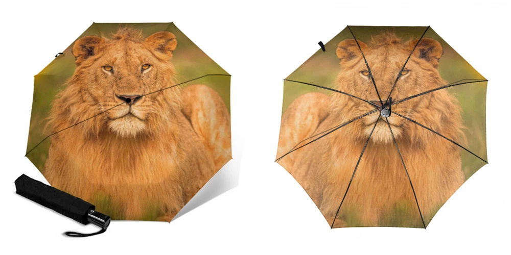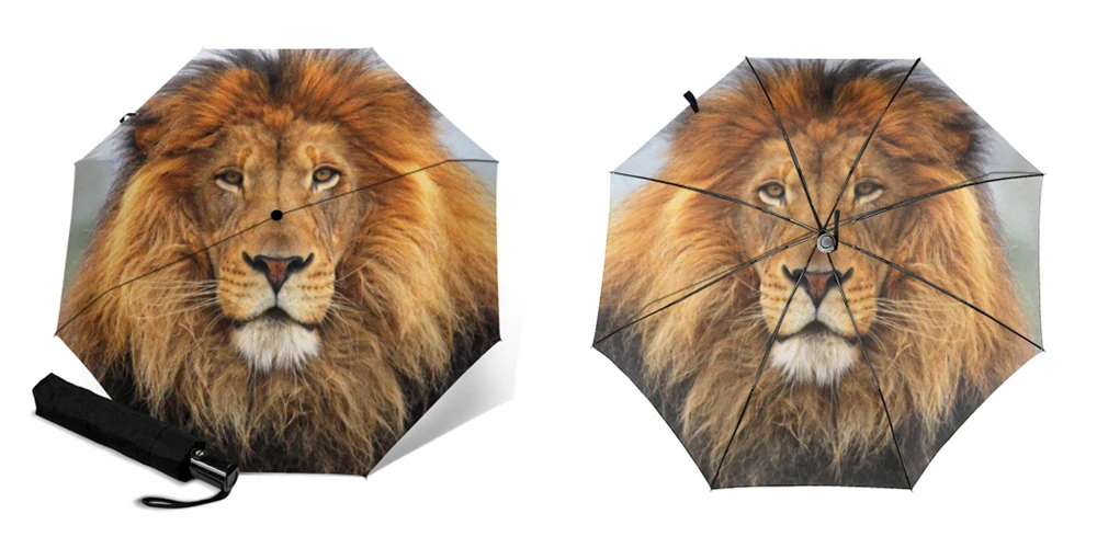 Полностью автоматический зонт, женские зонты, зонтик от солнца и дождя для улицы, зонтик от солнца, дождя, Модный женский зонтик с принтом льва