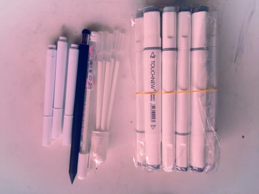 Маркеры пришли достаточно быстро, все были упакованы, корпусы целы, все маркеры пишут. Единственное, что CG5 при пробе был переполнен, поэтому лучше перед рисованием проверить, не переполнели ли вам маркер, во избежании порчи рисунка
