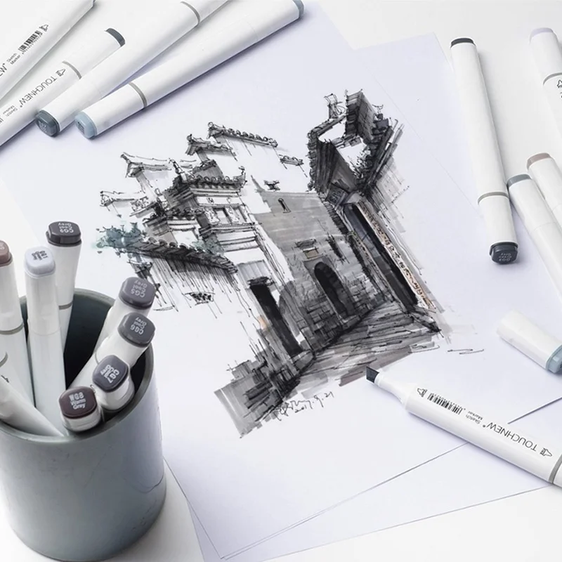 TouchNew художественный маркер двусторонние чернила на спиртовой основе нейтральный серый цвет скетч серые тона для графического рисования