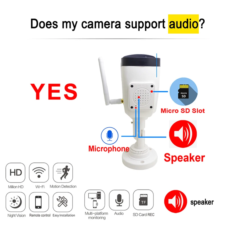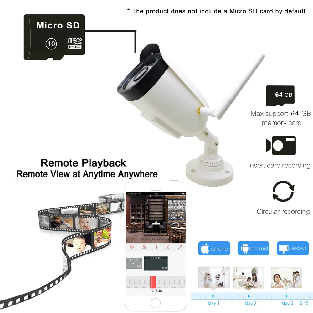 Водонепроницаемая камера видеонаблюдения с функцией ночного видения, 1080 пикселей, 720 пикселей, 960 пикселей, 1080 пикселей, IP 3,6 мм/6 мм/2,8 мм объектив Поддержка s Wi-Fi, так и в проводном режиме Поддержка карта Micro SD, карта SD объемом до 64 Гб (не содержит каких-либо Micro SD card); Поддержка ONVIF, можно использовать сторонние вечерние NVR. Поддержка мобильного видеонаблюдения (iOS,android), Поддержка обнаружения движения и оповещения по электронной почте, поддержка ночного видения, поддержка водонепроницаемого встроенного микрофона, удаленное видео в режиме реального времени, поддержка звука в режиме реального времени, запись видео и звука