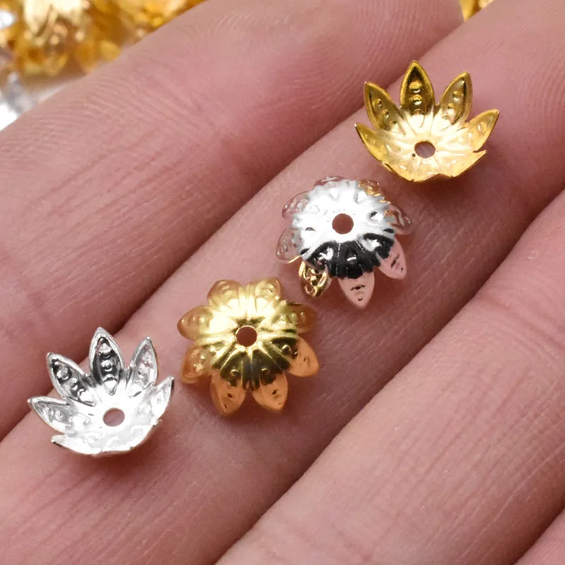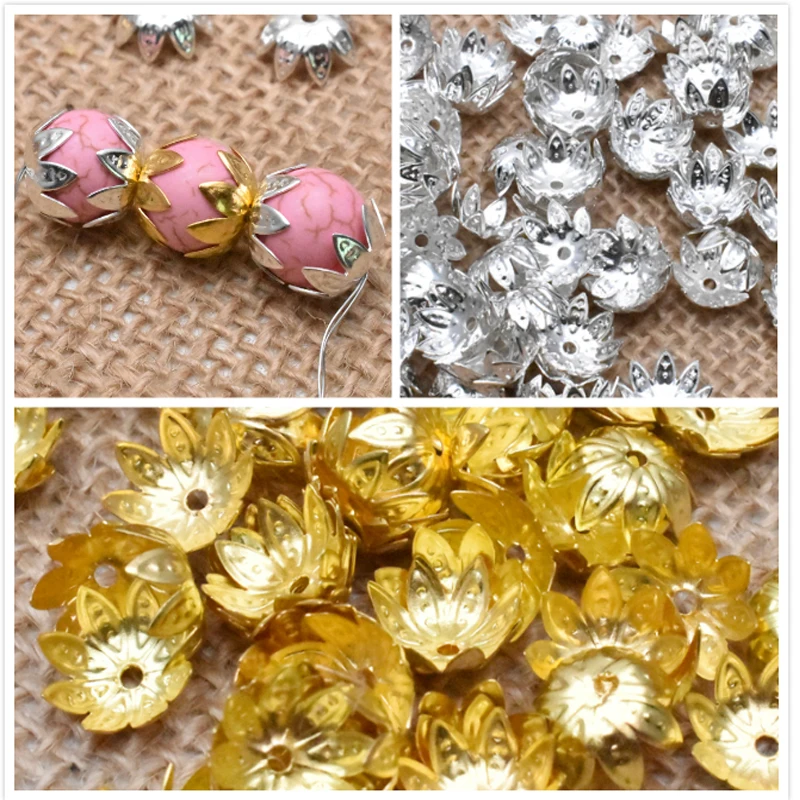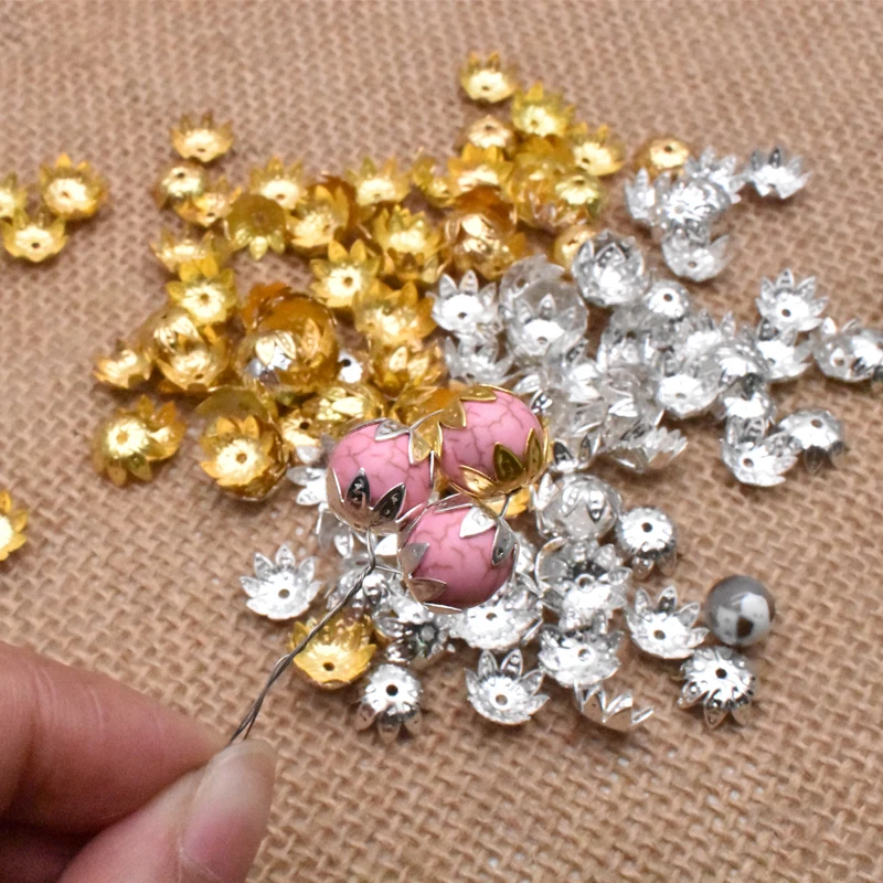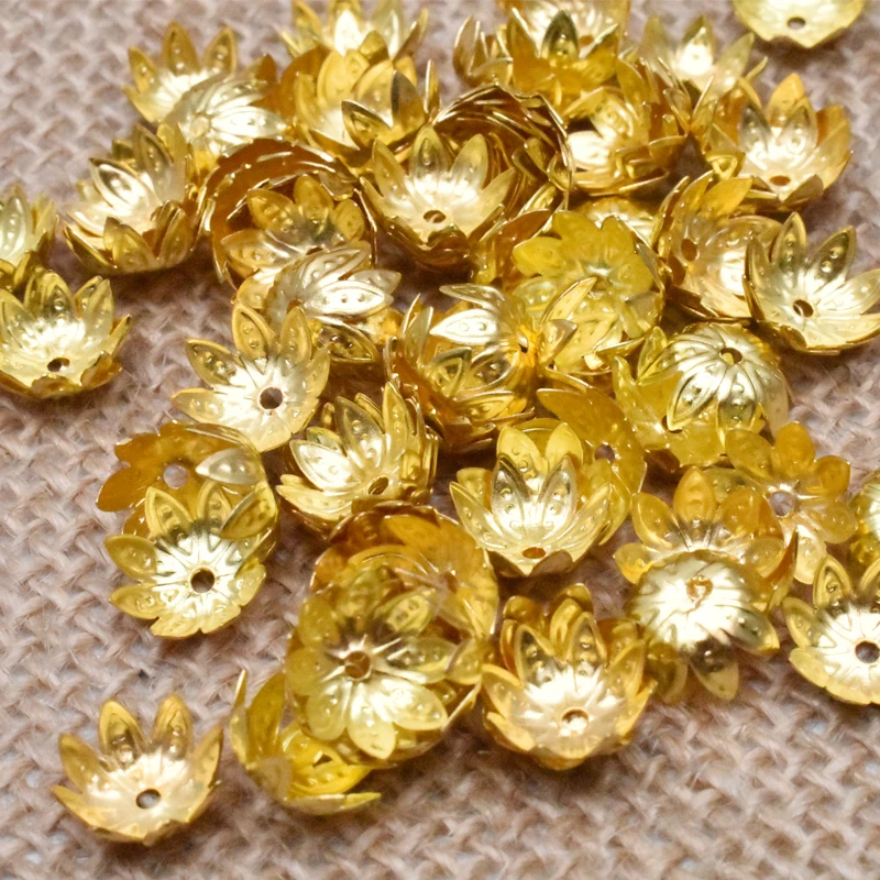 Круглые бусины из металлического сплава с отверстием для изготовления ювелирных изделий, фурнитура для золотых цветов, 810 мм, 100 шт.лот