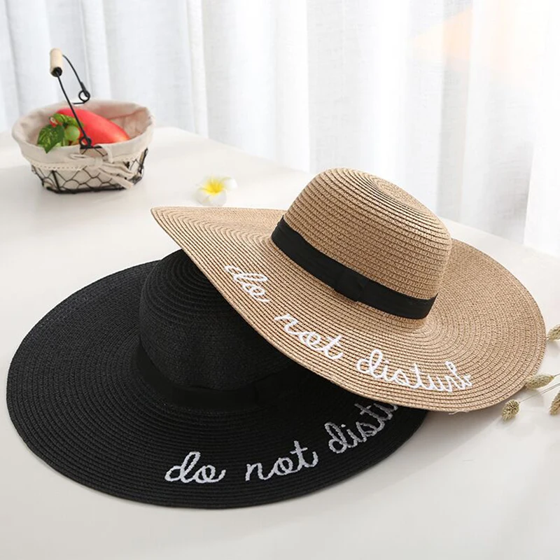 Шляпа женская Соломенная с большими полями, Панама с вышитыми буква...