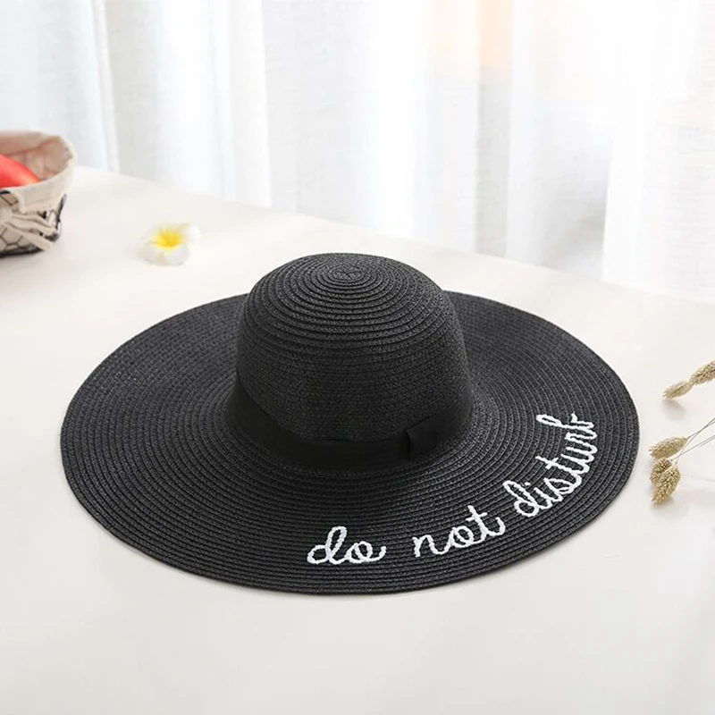 Шляпа женская Соломенная с большими полями и вышитыми буквами, Моло...