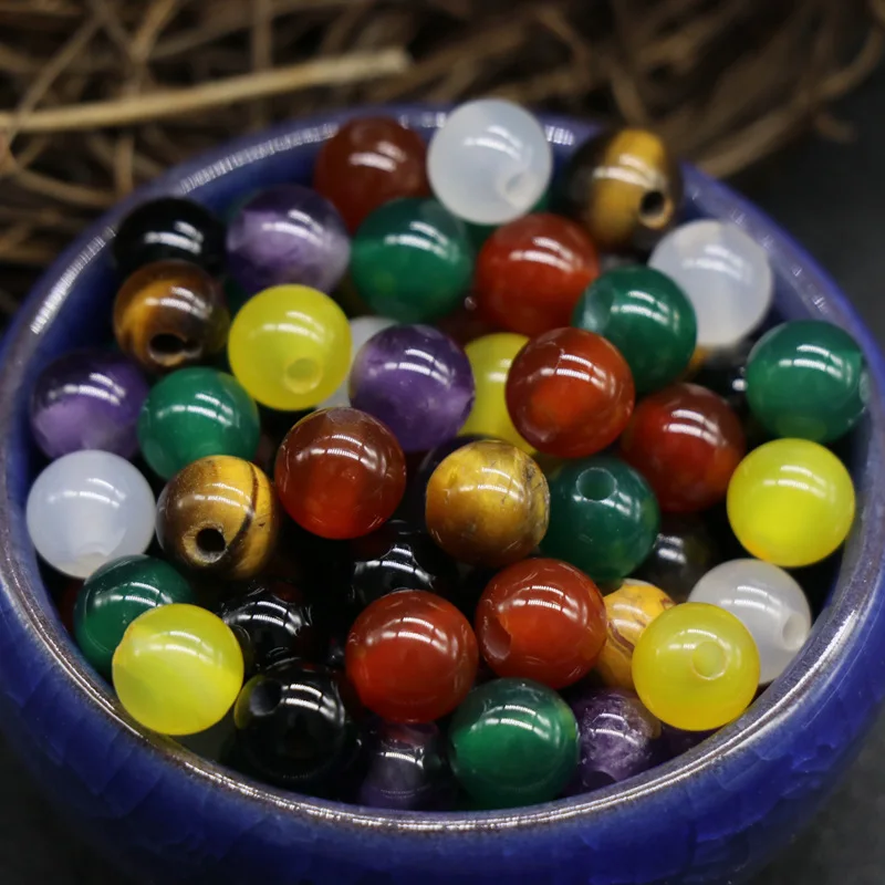 Бусины с большими отверстиями, Натуральный Полудрагоценный камень, кристалл розового кварца, Агат Круглой Формы, размер отверстия 2 мм бисер сделай сам для ювелирных изделий