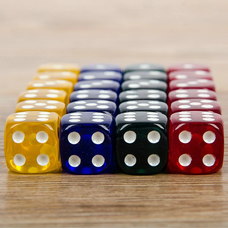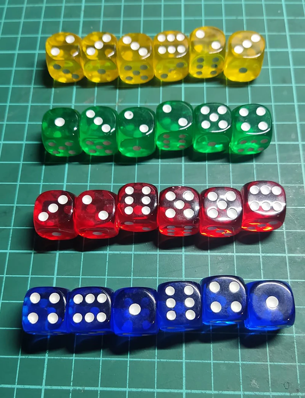 Набор из 24 прозрачных кубиков кубики для вечеринок дюйма с закругленными углами, 16 мм (прозрачный синий, зеленый, желтый, красный, все 6), 24 штуки