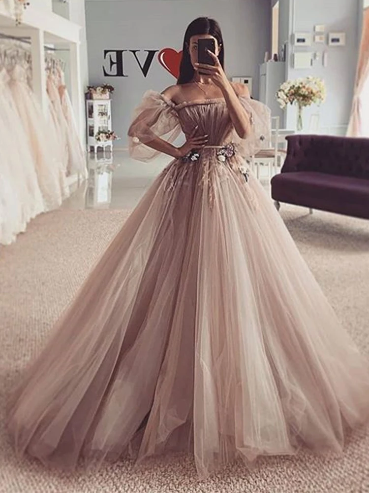 Lorie 2021 новые платья с оборками на рукавах с открытыми плечами из тюля для выпускного вечера ТРАПЕЦИЕВИДНОЕ официальное вечернее платье со шнуровкой сзади