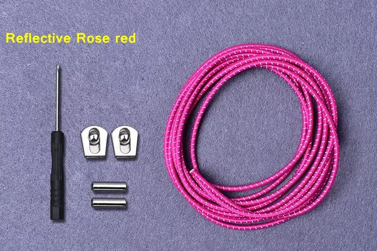 Эластичные шнурки для обуви, светоотражающие, без завязывания, с металлическим замком, для детей и взрослых, Круглые, для кроссовок, 26 цветов, 1 пара
