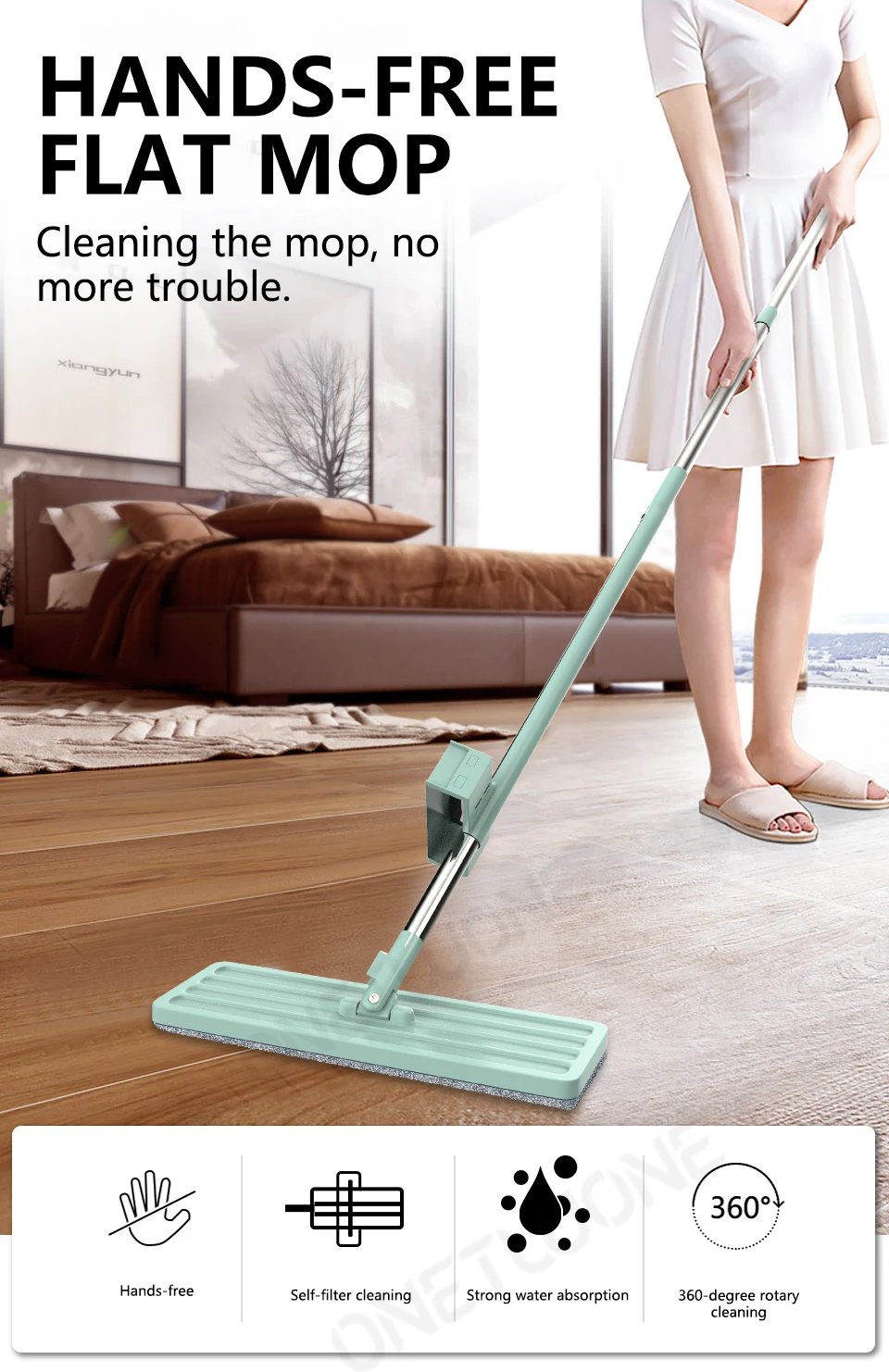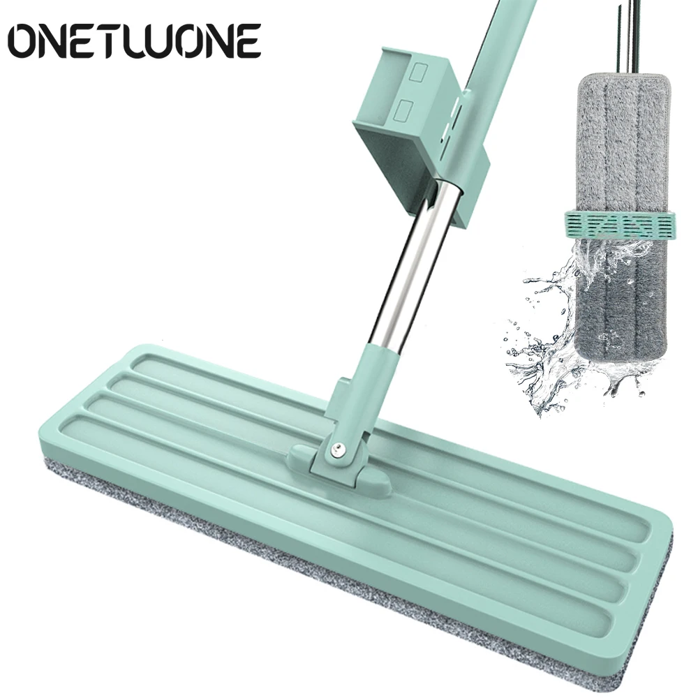 Микрофибра Швабра система очистки пола, 2 многоразовые швабры колодки, для мокрой и пыли измельчения лиственных пород, ламинат, плитка, камень плоская Швабра