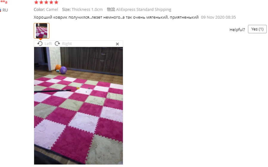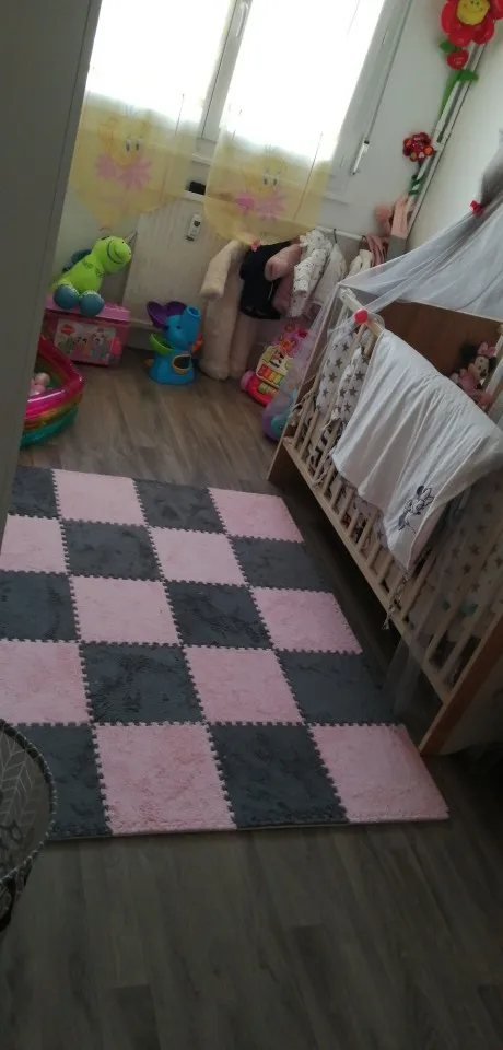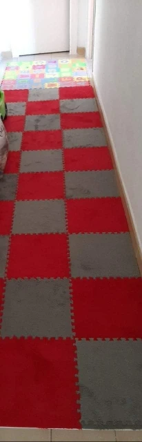 Честно говоря, я немного расстроилась. Я думала коврики будут потолще, оказались очень тонкими. В некоторых местах стыкуется плохо, т.к.слишком срезана стыковая мозаика. И очень сильно лезет ворс, чистила-чистила, а ребёнок всё равно весь в ворсинках.