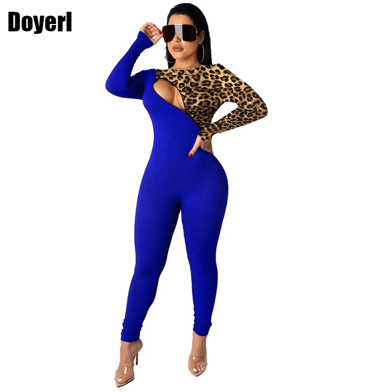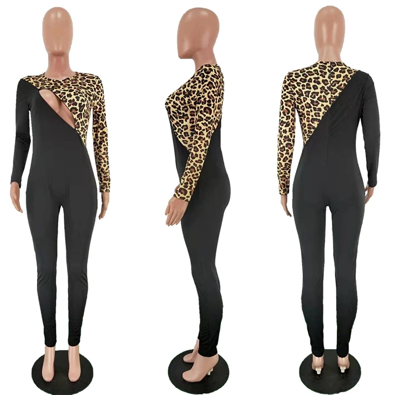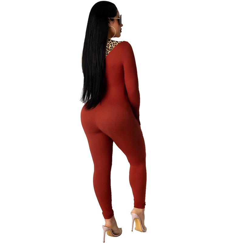 Женский леопардовый Облегающий комбинезон на молнии, с длинным рукавом