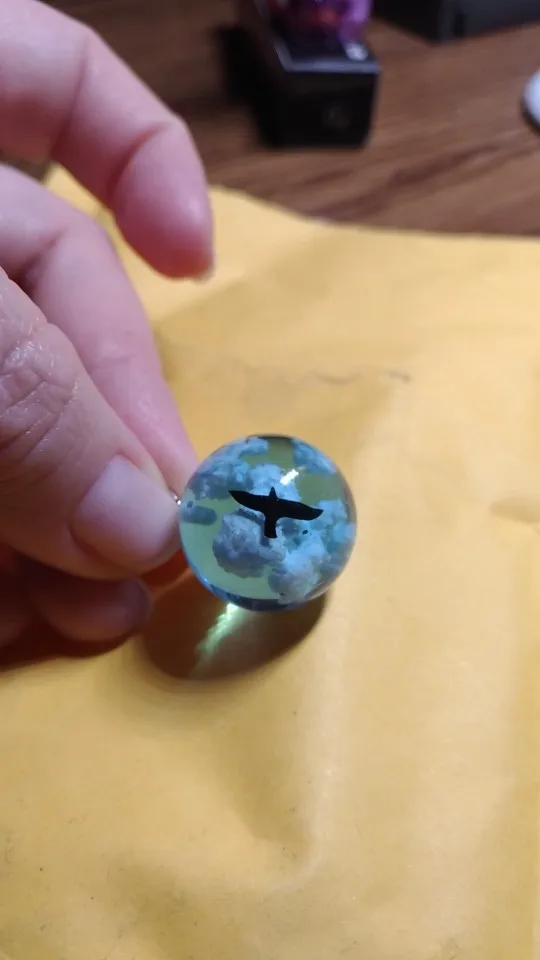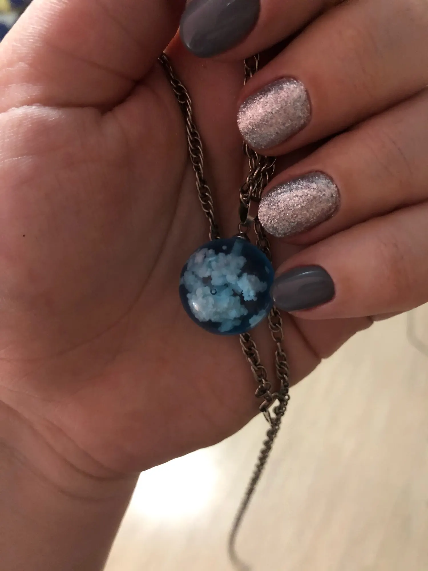 Товар доставлен. Я разочарованная. Количество облаков видимо всё время по разному. На краях шара вмятины и есть огромная выемка с воздухом! ... Заказывайте на свой страх и риск.Но всё же товар красивый и я буду его носить!)
