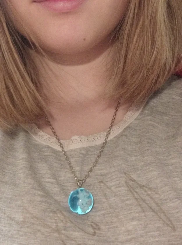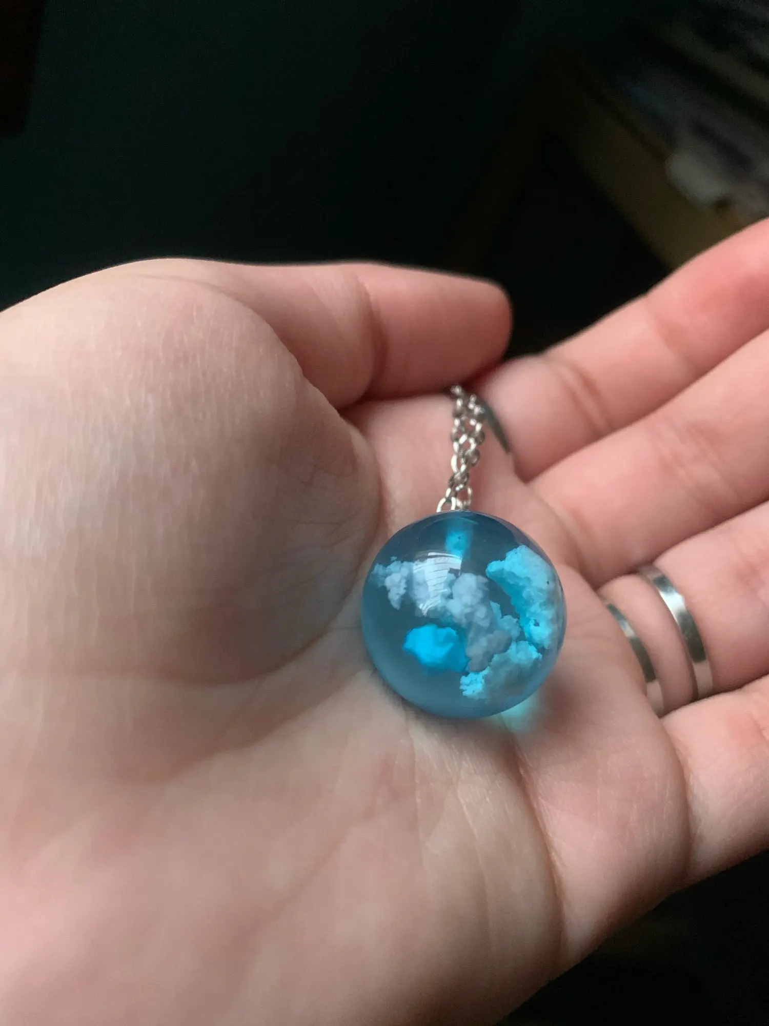 Выглядит действительно классно, как будто на моей шее было маленькое небо! Птица выглядит немного странной, но я думаю, что в целом она того стоит.