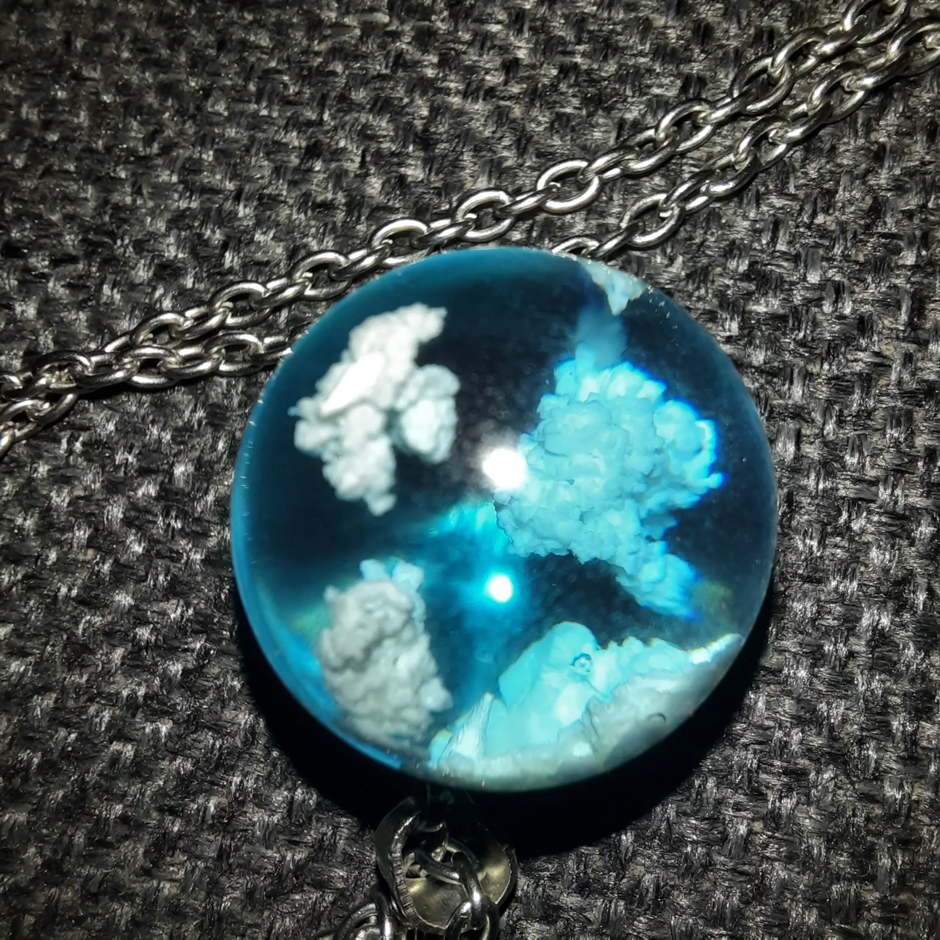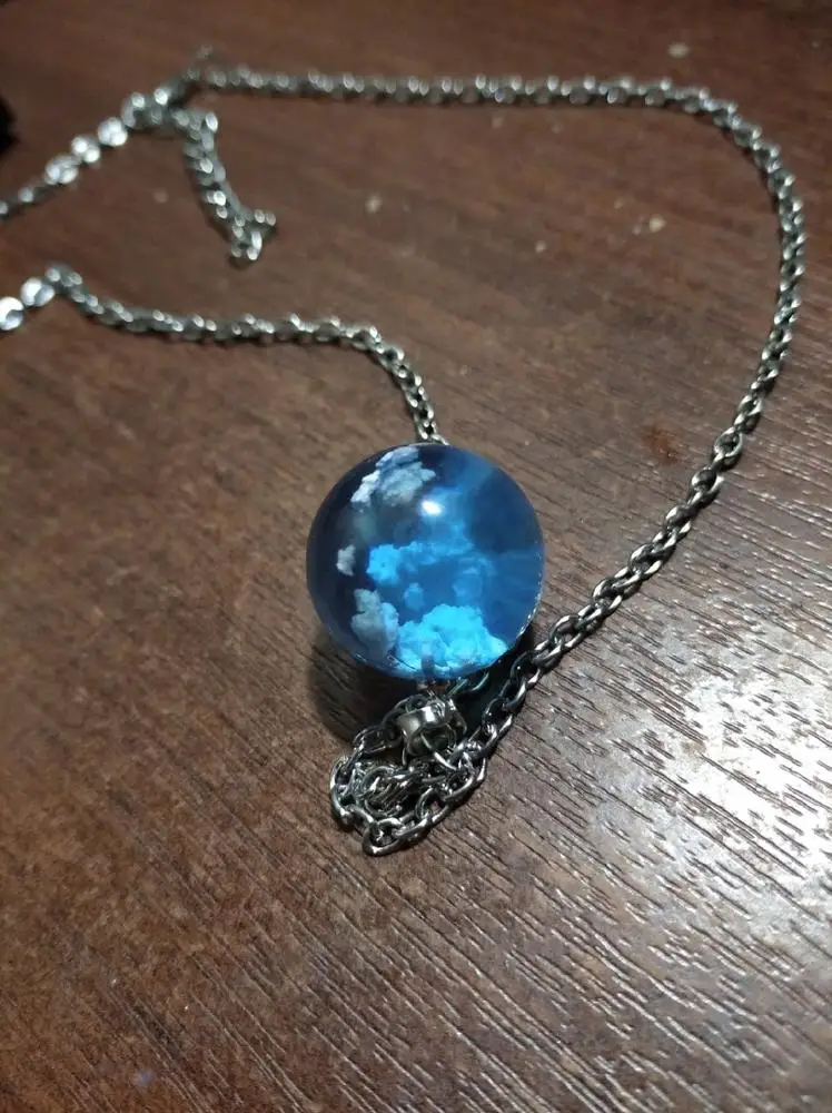 Шикарное ожерелье из прозрачной смолы с подвеской в виде шара Луны, женское ожерелье с голубым небом и белым облаком, цепочка, модные украшения, подарки для девушек