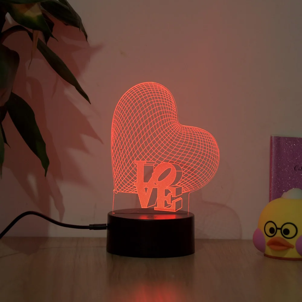 Подарок на день Святого Валентина, 3D лампа, светодиодный ночсветильник, 7 цветов, настольная лампа, домашний декор, лампочка с сенсорным датчиком, лампочка для жены, подарок, Прямая поставка