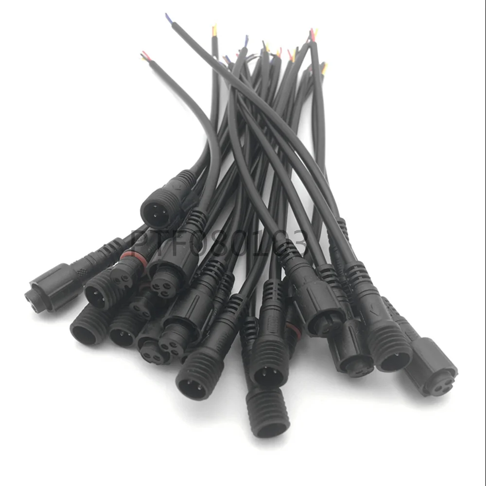 5102050 пар, 2-контактный, 3-контактный, 4-контактный 5-контактный светодиодный разъем, водонепроницаемый, IP68, черный кабель для светодиодных лент