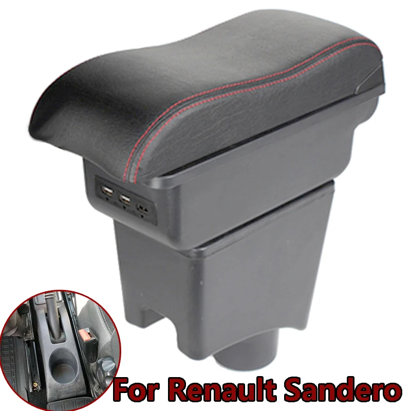 Подлокотник для Renault, Dacia, Sandero, Logan, двухслойный, центральный, с USB-зарядкой, пепельница для хранения, автомобильные аксессуары