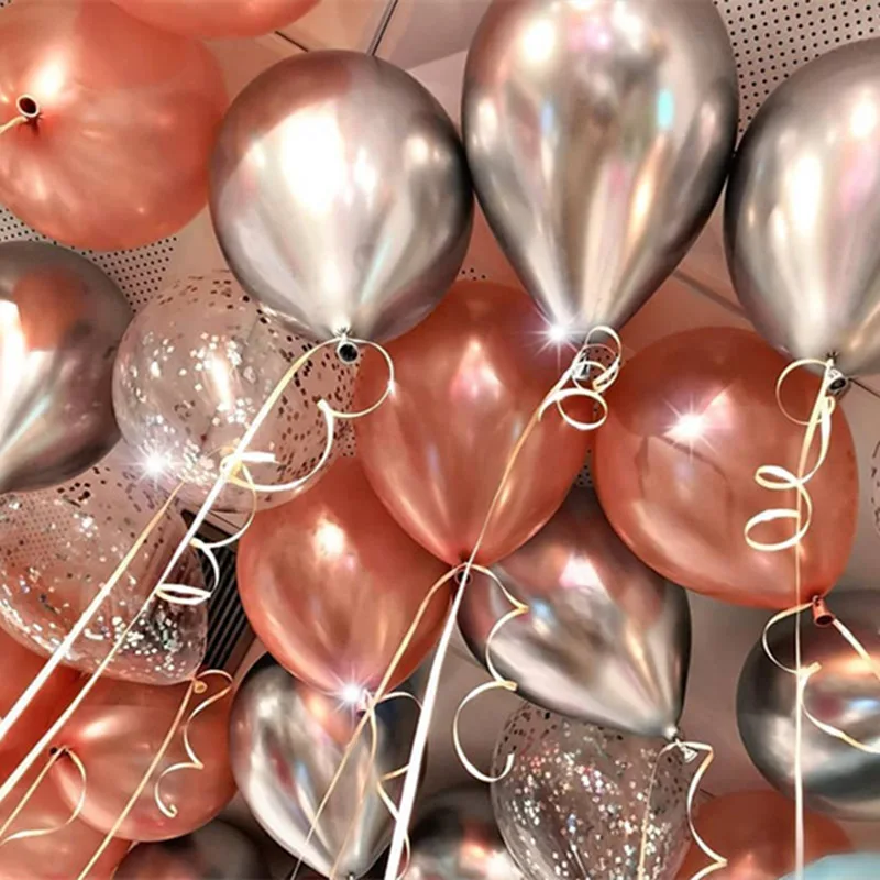 Шары воздушные латексные золотистые, серебристые, прозрачные, розовое золото воздушный шар "Конфетти" пробы, 15 шт.