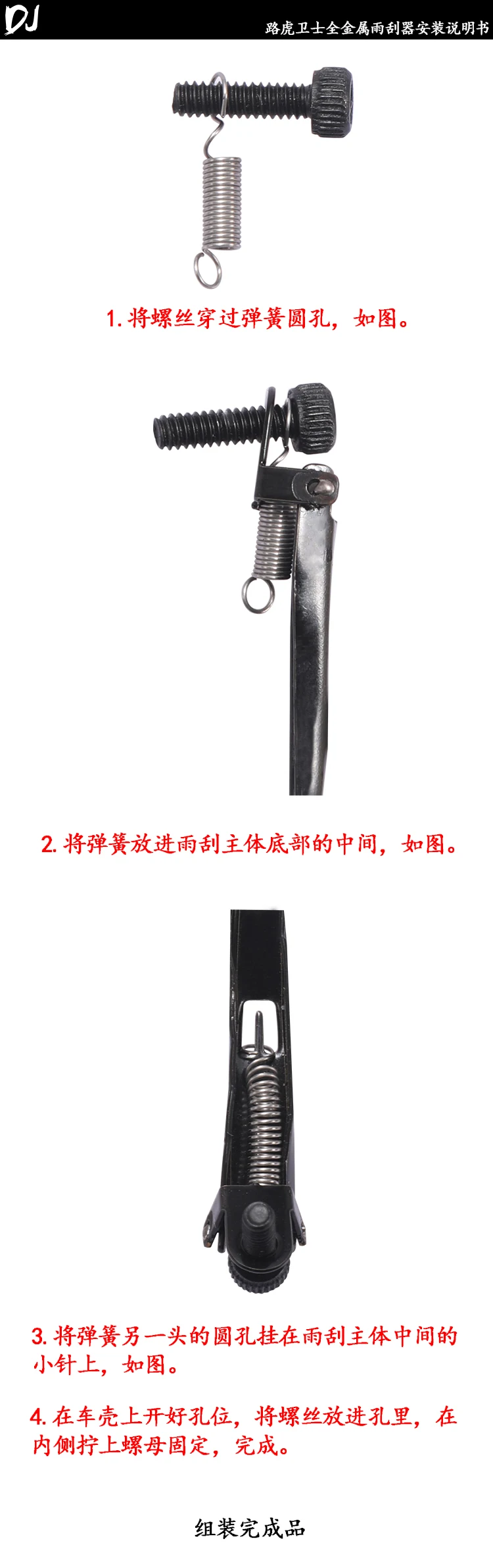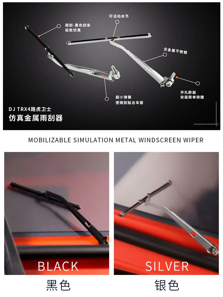 Дворники приходят полу-предварительно собранные и предварительно согнутые анодированные в черном. Что мне действительно нравится в этих стеклоочистителей, так это то, что лезвие и рычаг стеклоочистителя соединены крошечным проводом вместо громоздкого винта. Вам нужно установить пружину пинцетом и согнуть несколько частей здесь и там, чтобы она подходила. Тем не менее, один из самых перспективных дворников на рынке, который будет установлен на TRX4 RCDream Defender 110.