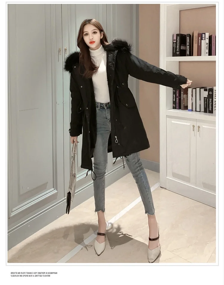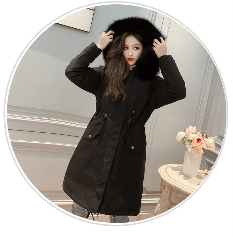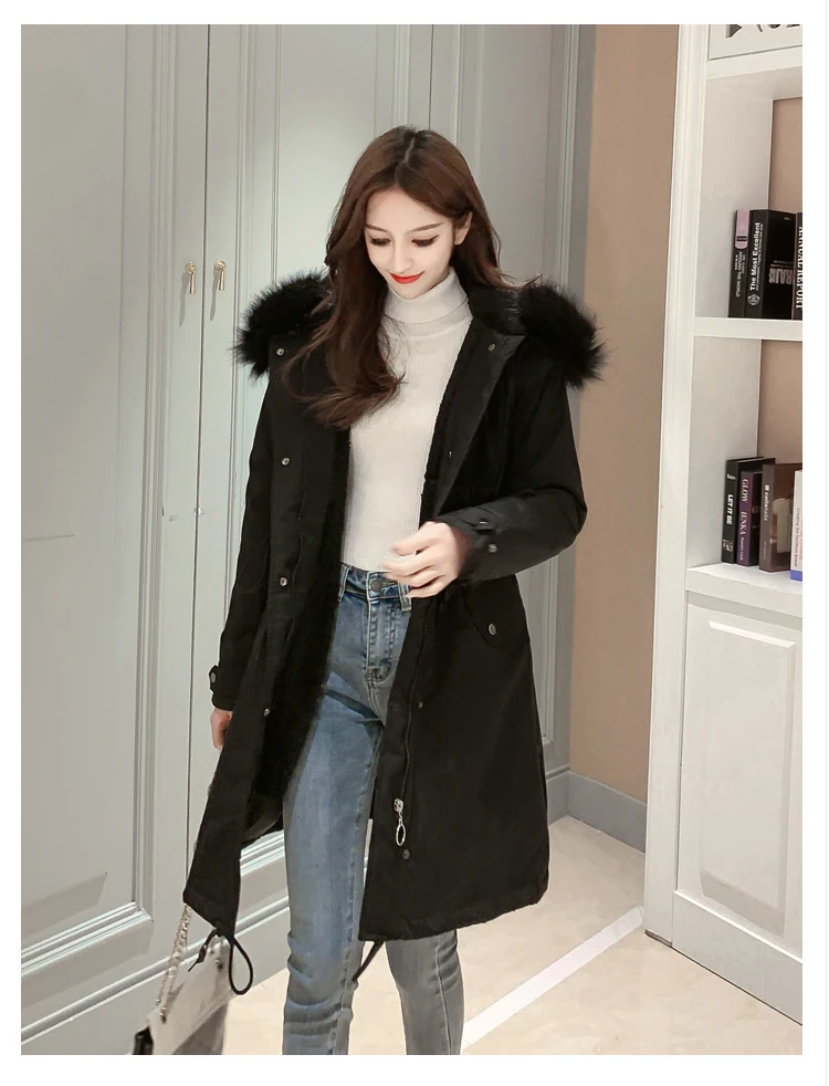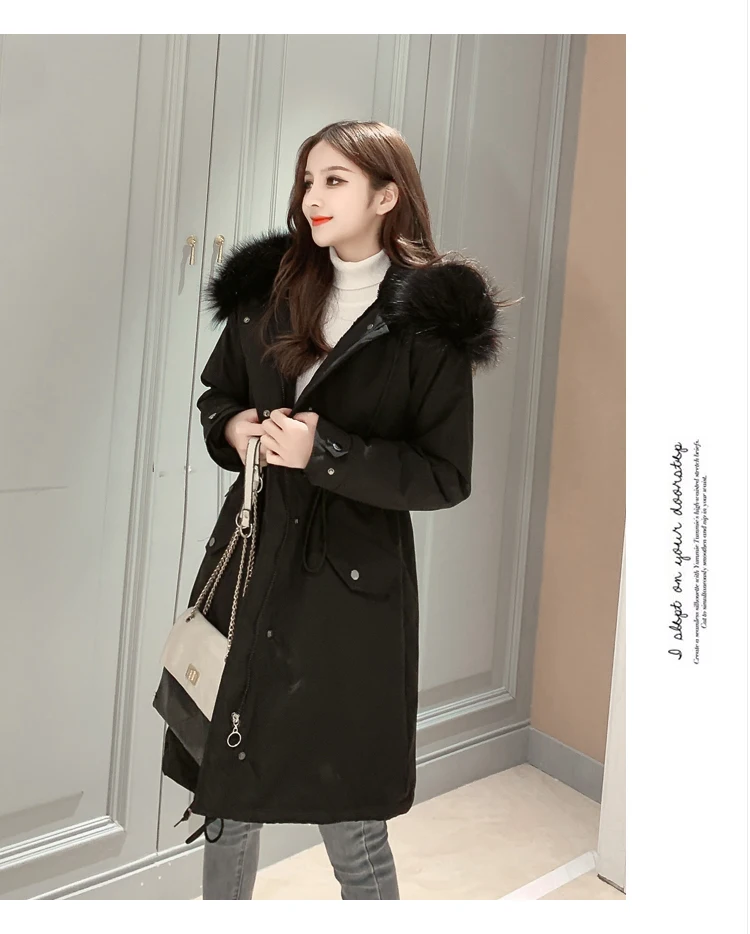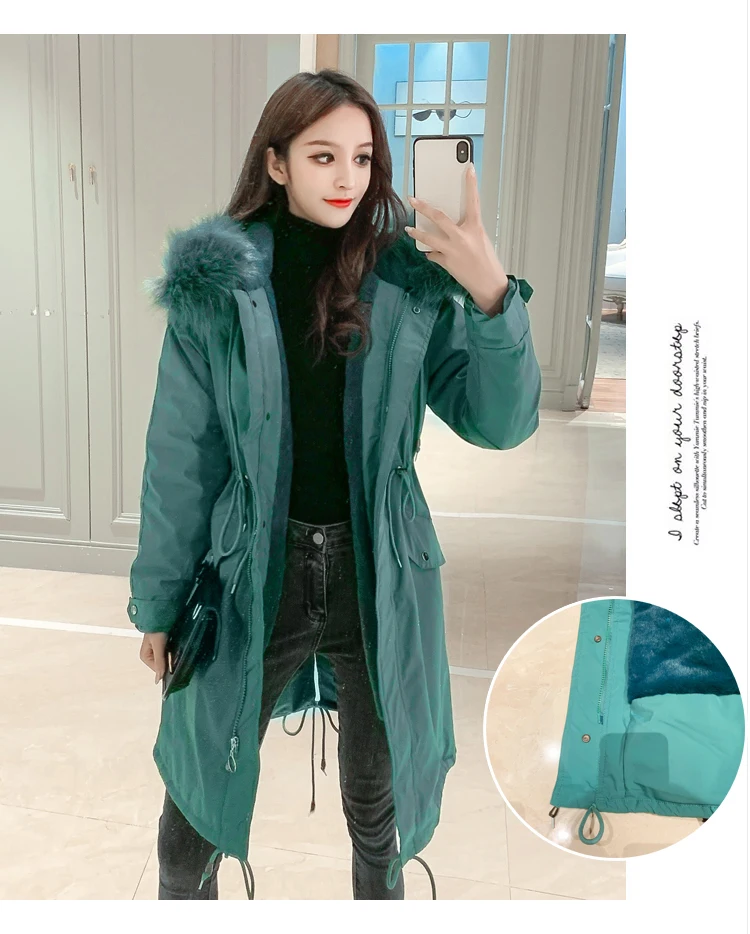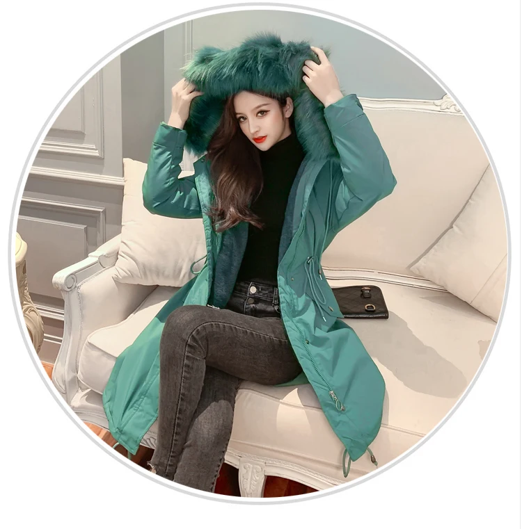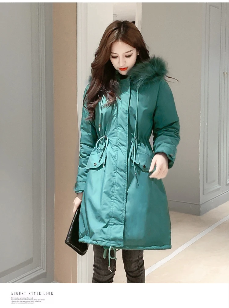 Зимняя длинная куртка, Женская парка с капюшоном из искусственного меха, Женское пальто с толстой шерстяной подкладкой, женская зеленая хлопковая парка, верхняя одежда