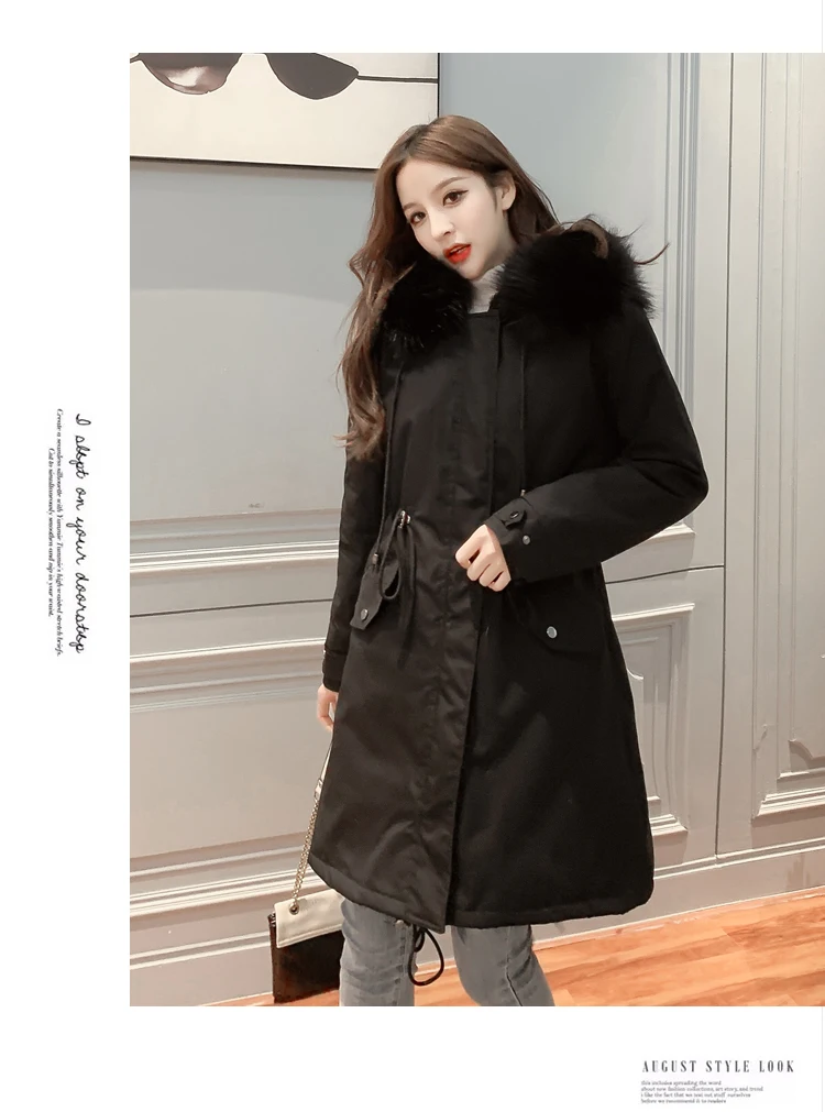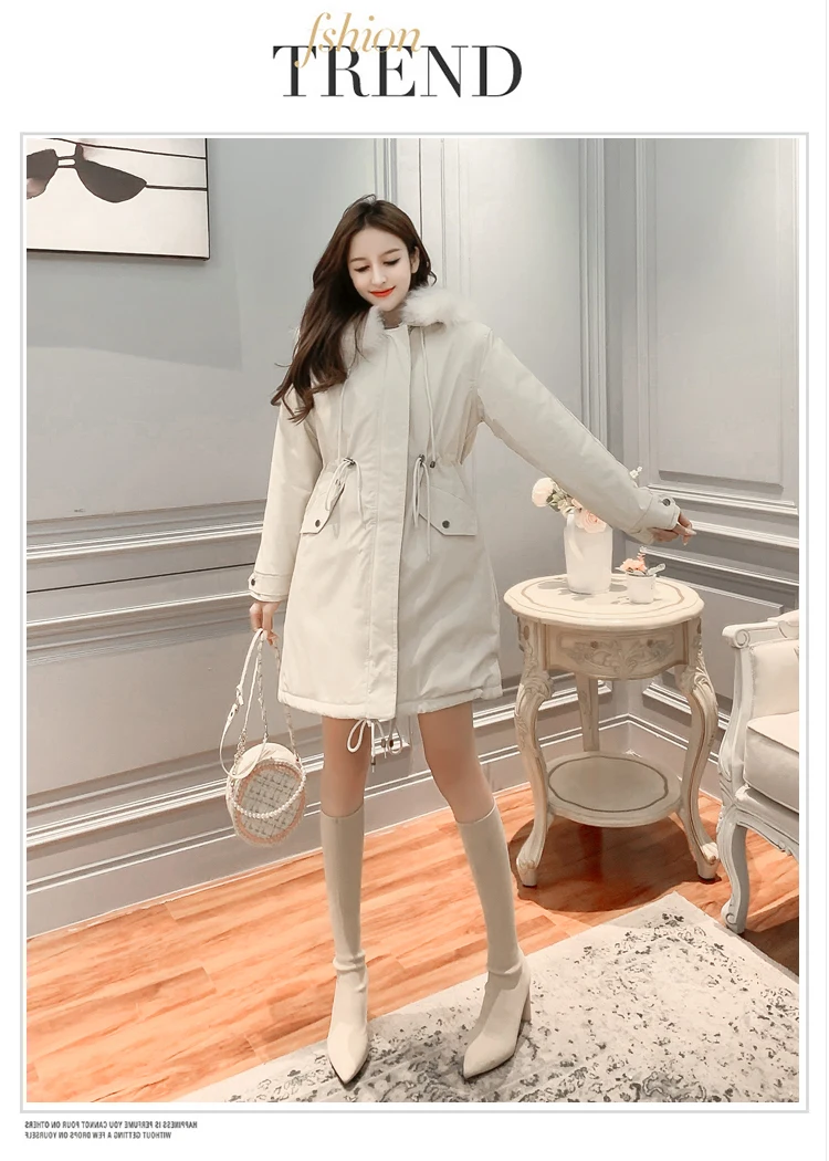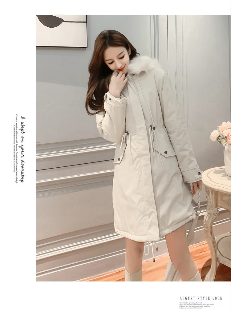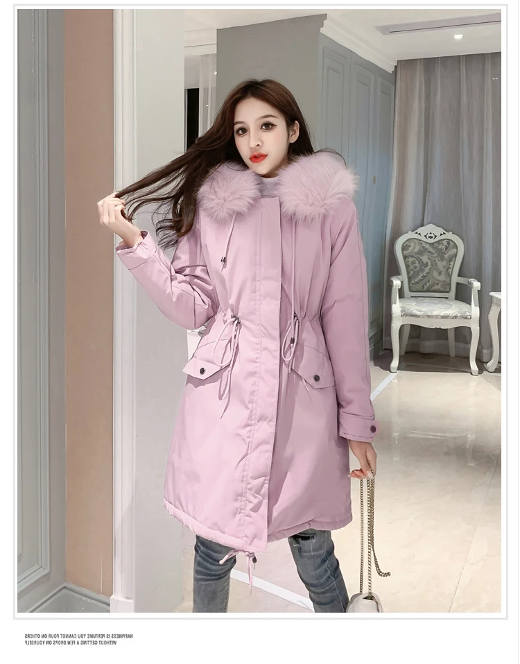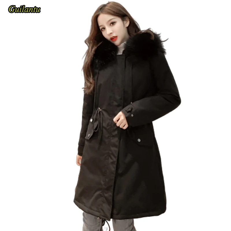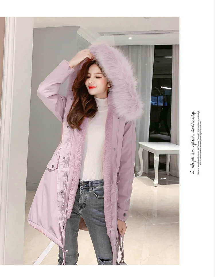 Зимняя длинная куртка, Женская парка с капюшоном из искусственного меха, Женское пальто с толстой шерстяной подкладкой, женская зеленая хлопковая парка, верхняя одежда