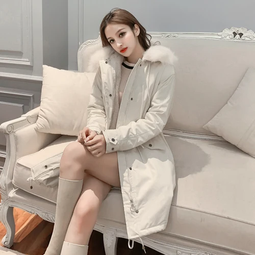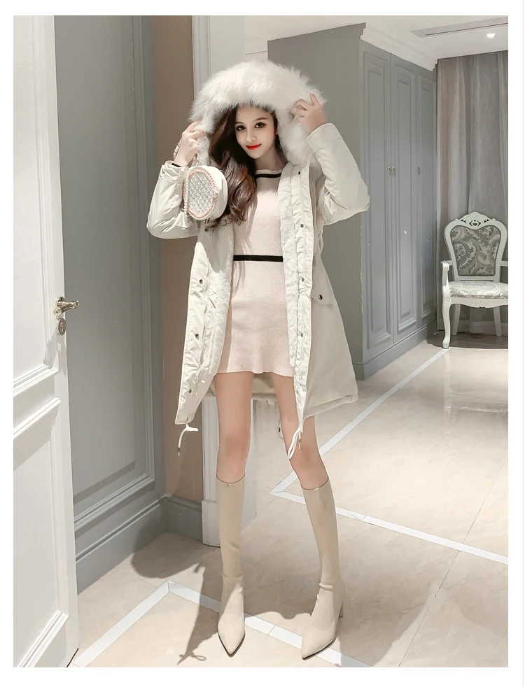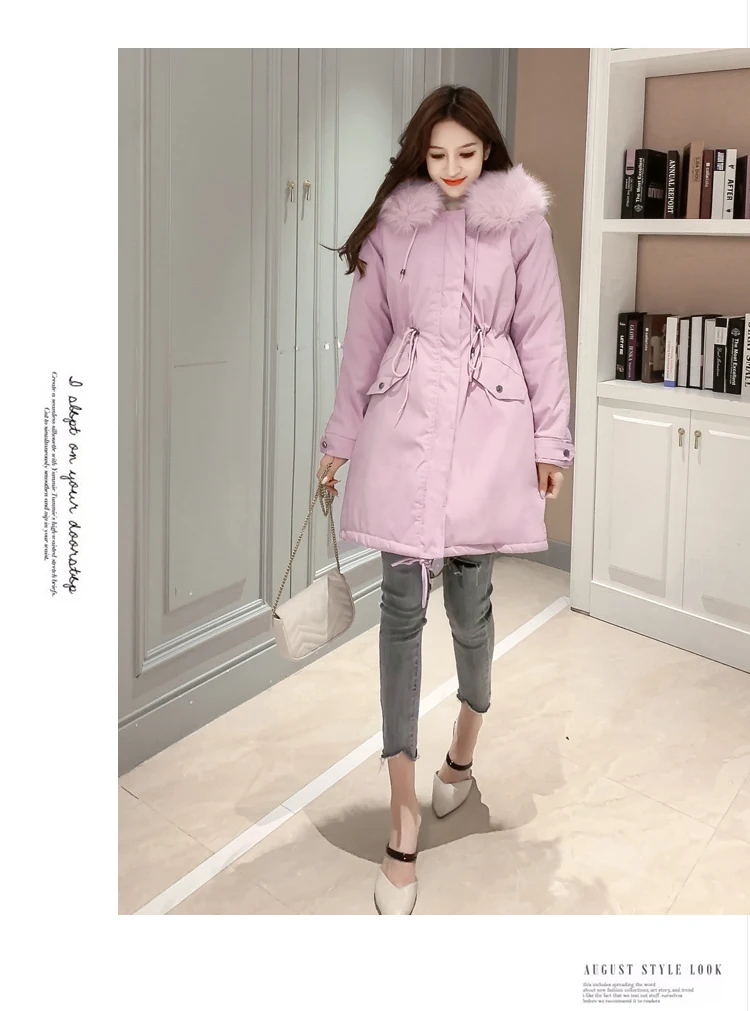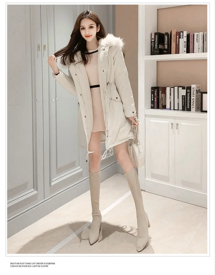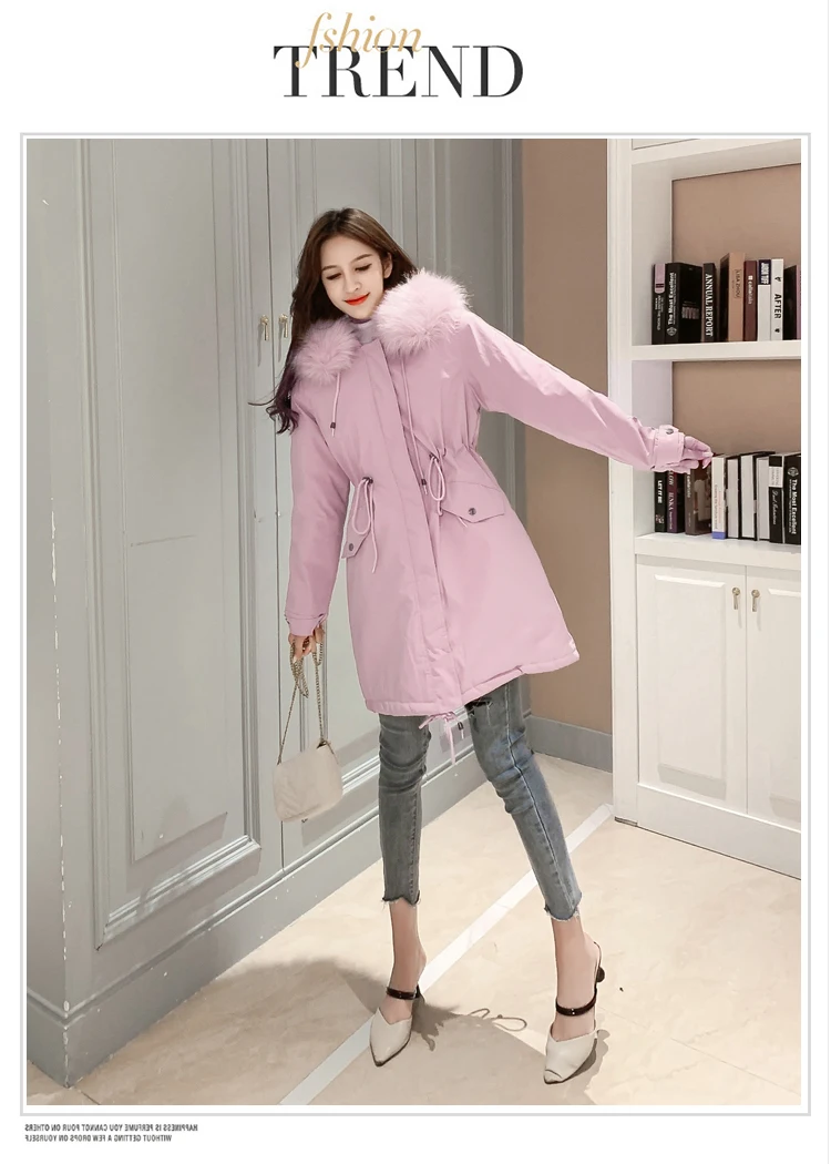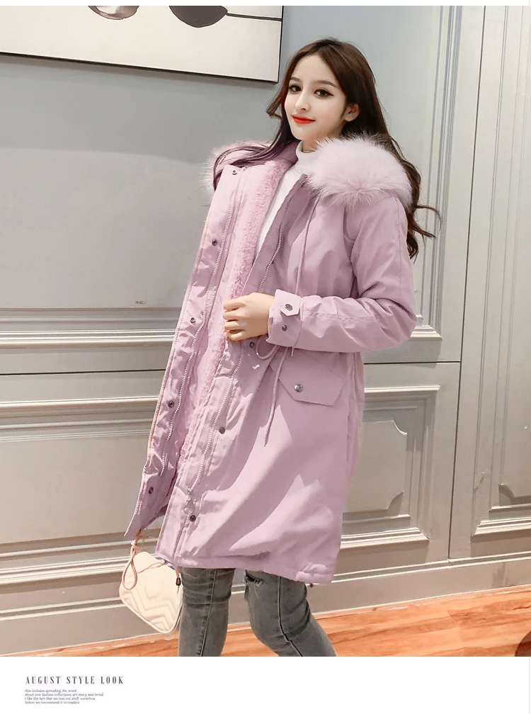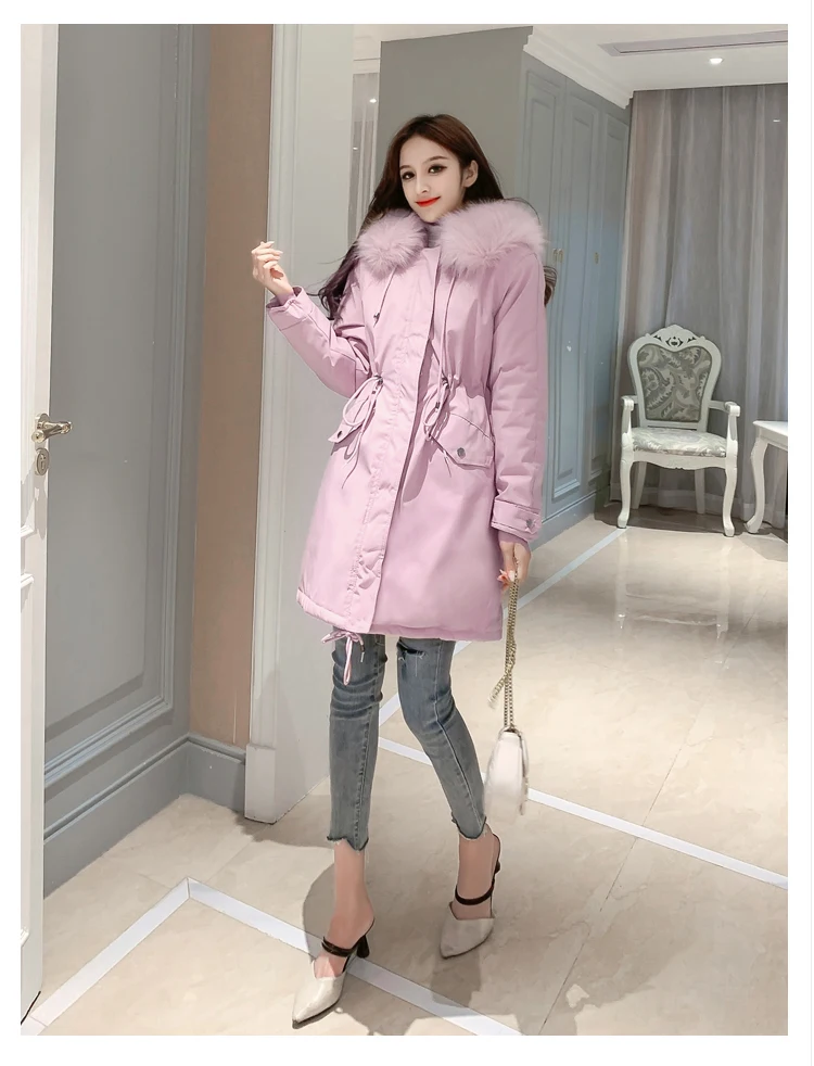 Зимняя длинная куртка, Женская парка с капюшоном из искусственного меха, Женское пальто с толстой шерстяной подкладкой, женская зеленая хлопковая парка, верхняя одежда