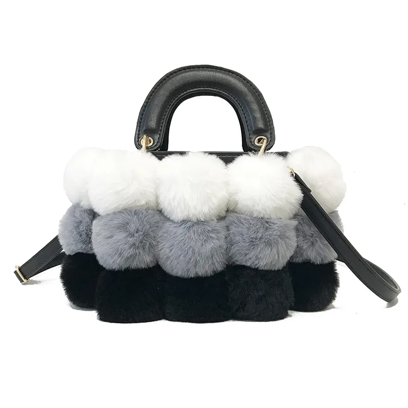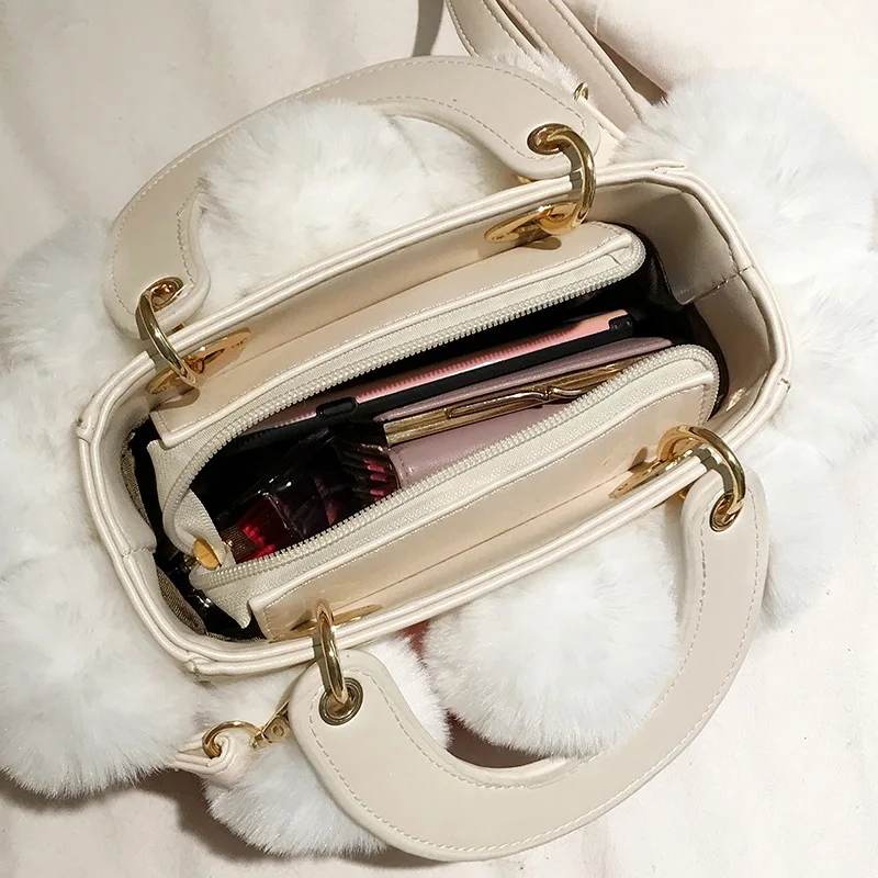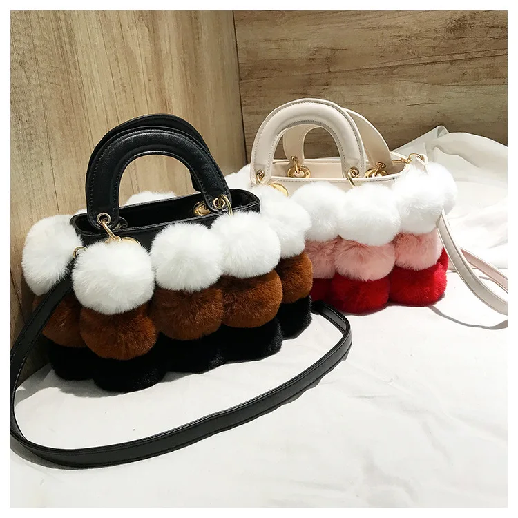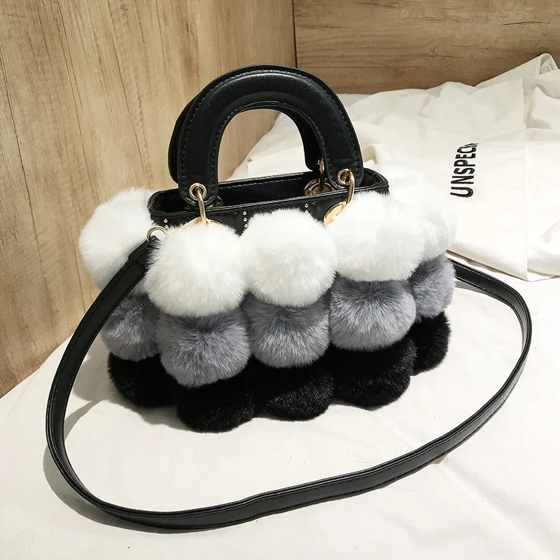 Зимняя Роскошная Новая Милая женская сумка-тоут из искусственного меха, женская дизайнерская сумка, сумка-мессенджер через плечо с помпоном, bolsos mujer