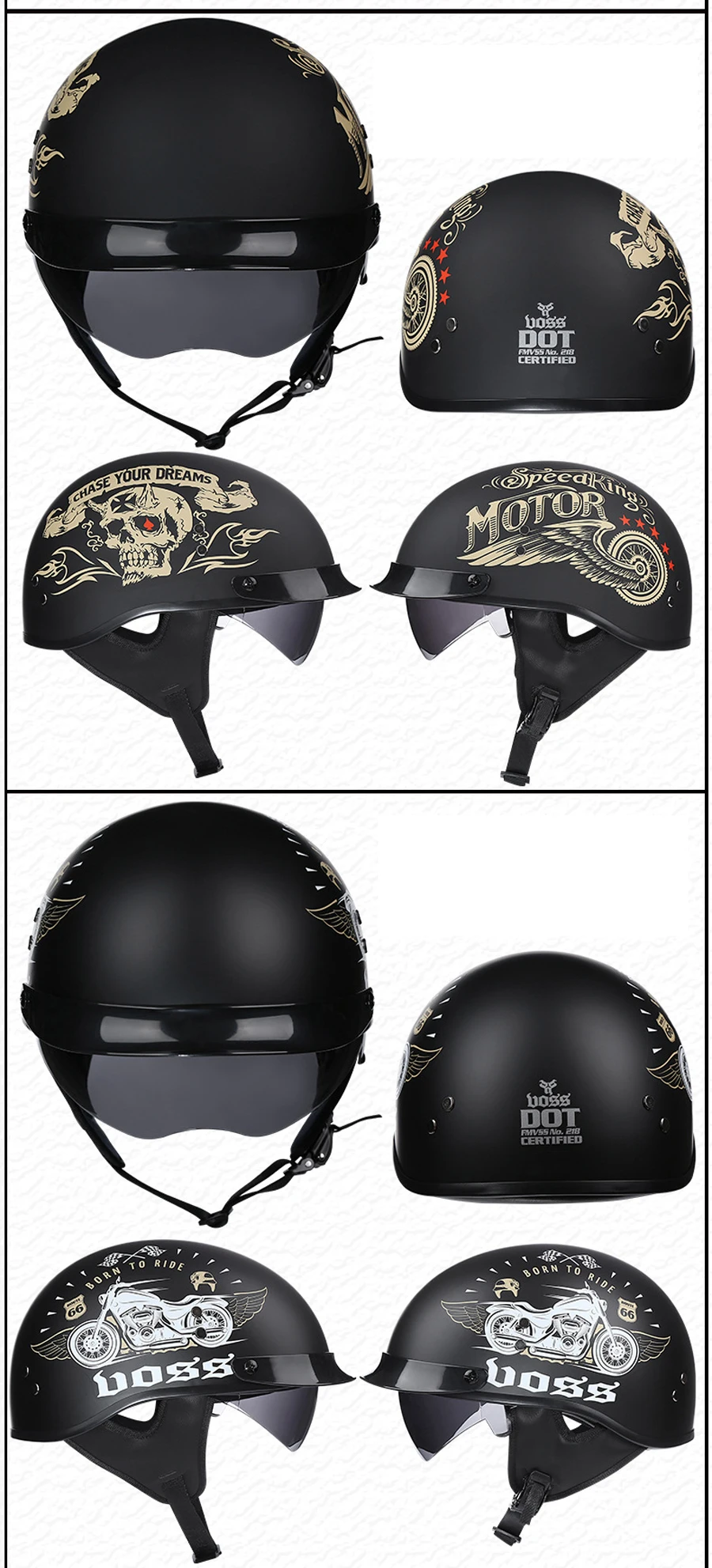 Мотоциклетный шлем VOSS в стиле ретро, винтажный велосипедный шлем на пол лица для скутера, сертификация в горошек