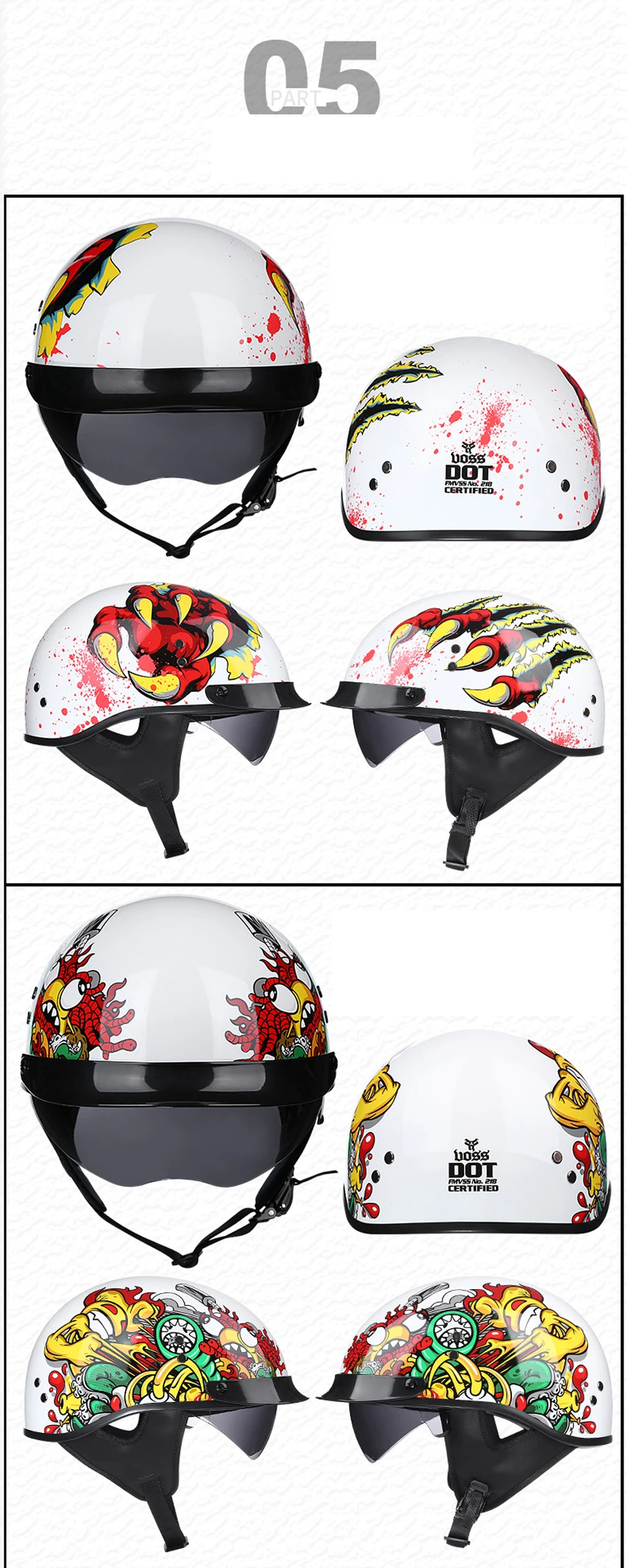 Высокопрочный корпус из АБС-пластика, легкий и ударопрочныйГладкий и легкий дизайн уменьшает шум ветраМногоплотный защитный буферный слой EPS обеспечивает современное поглощение энергии.Комфортная мягкая набивка liner использует дышащую техническую ткань, гипоаллергенную, высококлассную ткань, мягкую, абсорбирующую, вентиляцию, лучшую гибкость; Больше чистотыДизайн очков обеспечивает защиту от ультрафиолетаБЫСТРОРАЗЪЕМНАЯ Пряжка для надежной фиксации, которая будет держаться на головеРазумный Дизайн: Сделайте поездку очень увлекательнойСертификация DOT, гарантия качестваСъемные защитные наушники Спецификация:Материал: Синтетическая кожа, ABS. EPSЦвет: как на изображенииВес: шлем 1000 гНазвание позиции: мотоциклетные шлемы, мотоциклетный шлем из АБС-пластика Посылка:1 * мотоциклетный шлем