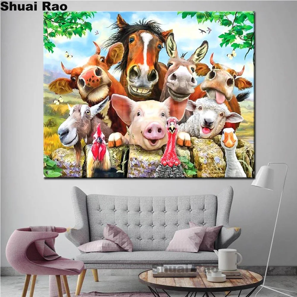 Корова Лошадь свинка осел ферма животные 3d diy алмазная живопись полная квадратнаякруглая дрель Алмазная вышивка распродажа, фермерские украшения