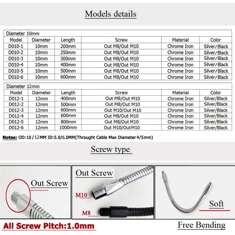 Гибкий Держатель для светильников Goosenk, диаметр 6, 8, 10, 12 мм, металлический шланг 10-60 см, универсальные мягкие настольныенастольные лампы, трубки под змеиную кожу, 2 шт.