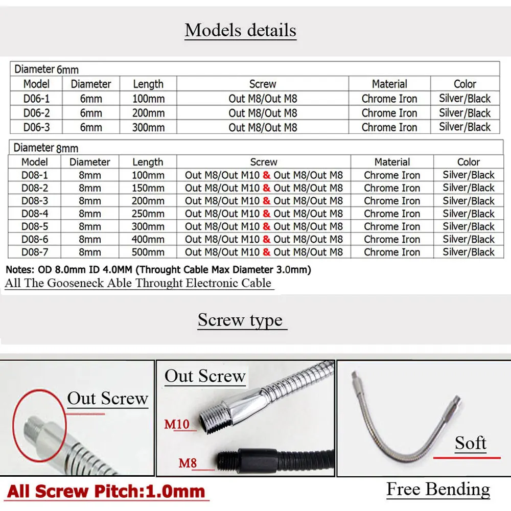 ХарактеристикиLED Gooseneck /Soft Hose /Metal Pipe/Universal Hose