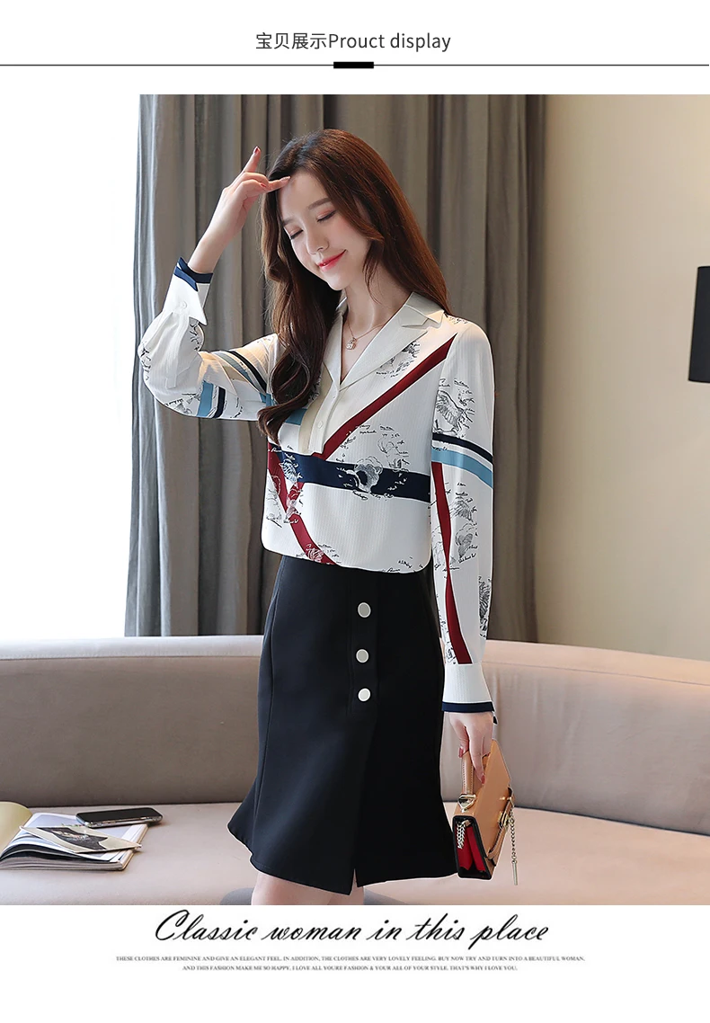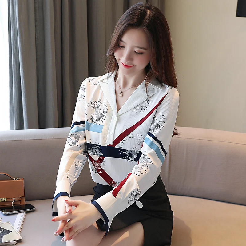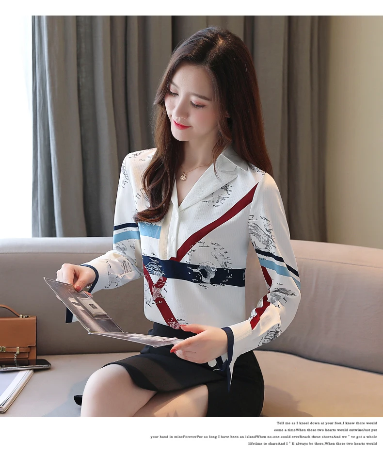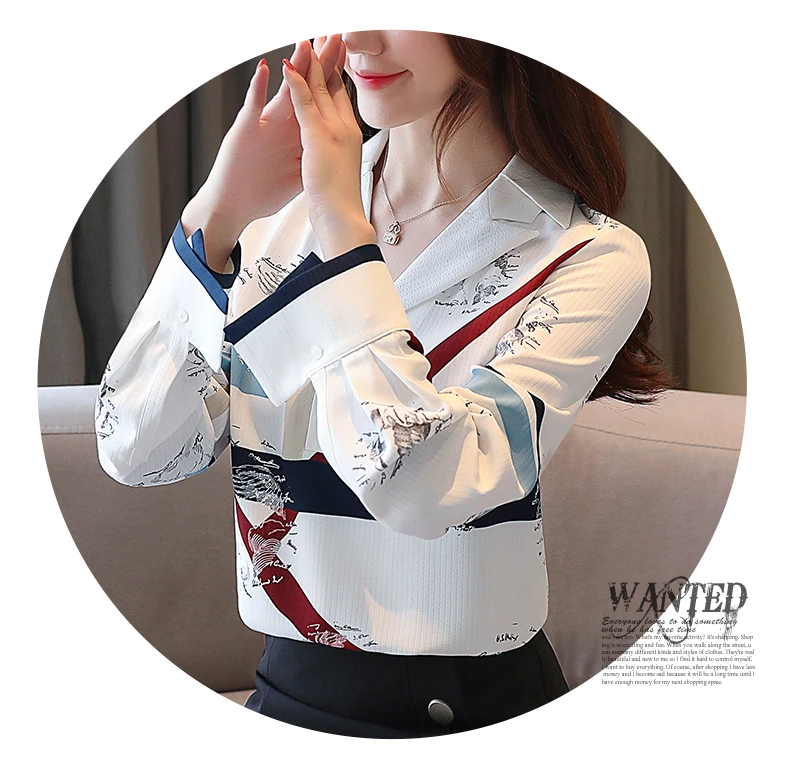 Женская шикарная офисная блузка, шифоновые рубашки с длинным рукавом и принтом, весна 2020