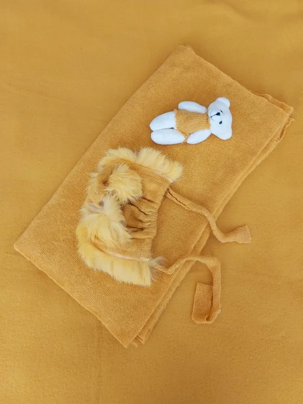 Шапочка вязаная из реквизит для фотосессии для девочек искусственного меха, 3 шт.компл.