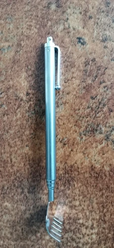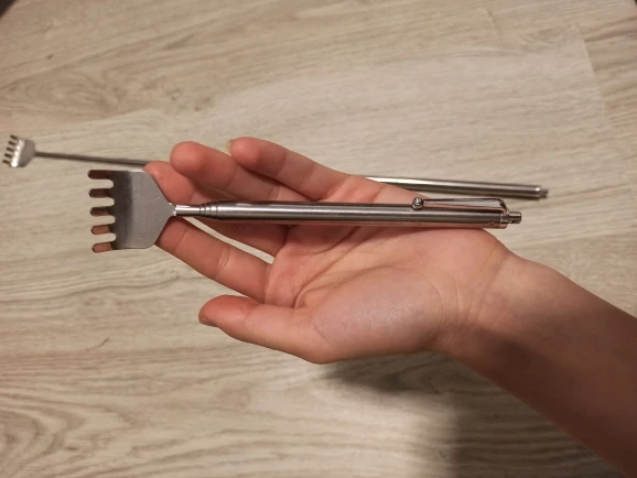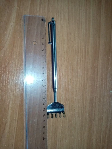 Товар отправил быстро. Соответсвует описанию. Маленький легкий, складывается до размеров шариковой ручки, чешет спину отлично, то что я и хотел. Единственное вызывает сомнение долговечность, уж очень хрупко выглядит соединение когтей к телескопической трубке