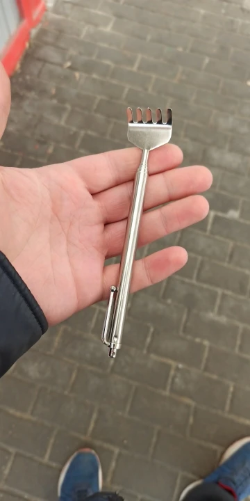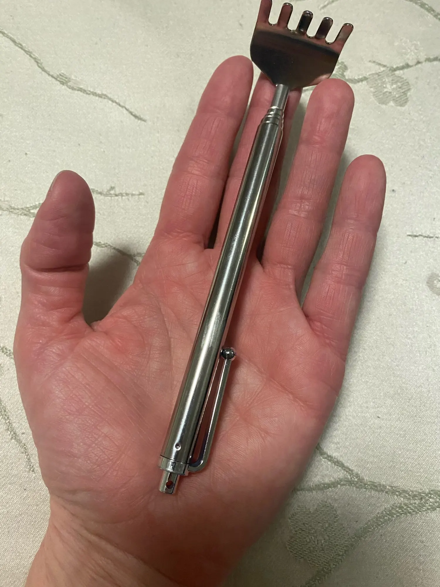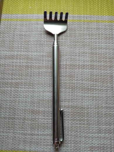 Это очень маленький, размер кармана, он служит для царапин на спине и труднодоступных мест.