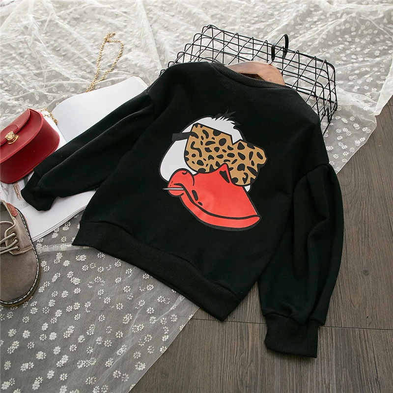 Детская одежда Disney Дональд Дак, весенний свитер с длинным рукавом для девочек, Джинсовая юбка с леопардовым принтом, комплект из 2 предметов, пальто для девочек