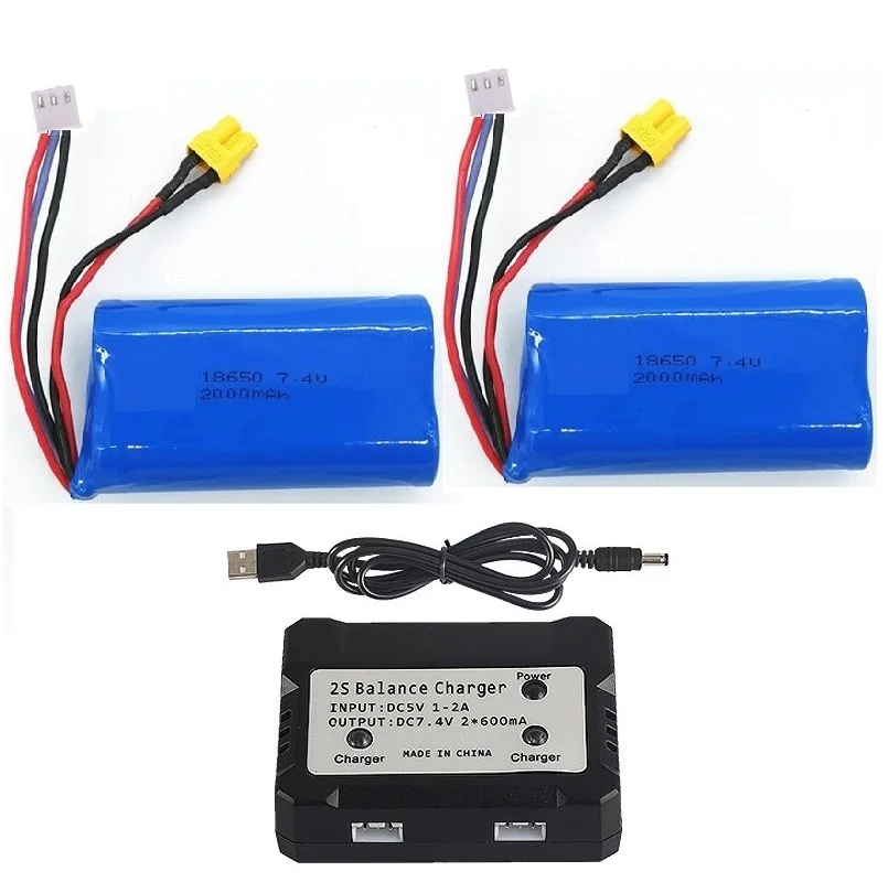 Штепсельная Вилка XT30, 7,4 В, 2000 мАч, литий-ионная аккумуляторная батарея 18650 для HUINA 1580, 1583, 114, 23 канала, радиоуправляемого электрического строительного экскаватора