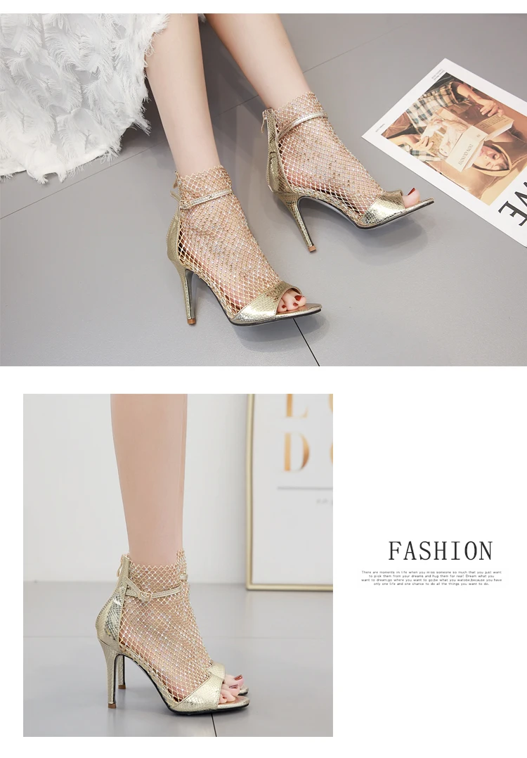 Новинка, летние блестящие сандалии-гладиаторы Aneikeh, сетчатые пикантные туфли, женские туфли на высоком каблуке, с открытым носком, на молнии, для вечеринок, туфли-лодочки на тонком каблуке