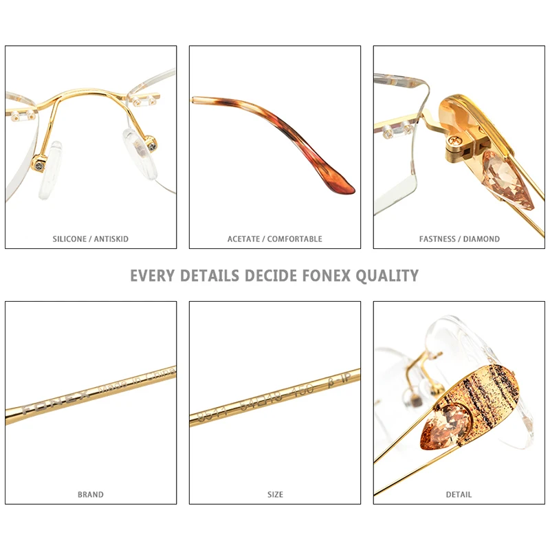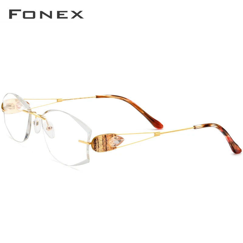 FONEX Женские очки без оправы, сверхлегкие Роскошные очки без оправы с алмазной отделкой, оптическая оправа для очков по рецепту, 8511