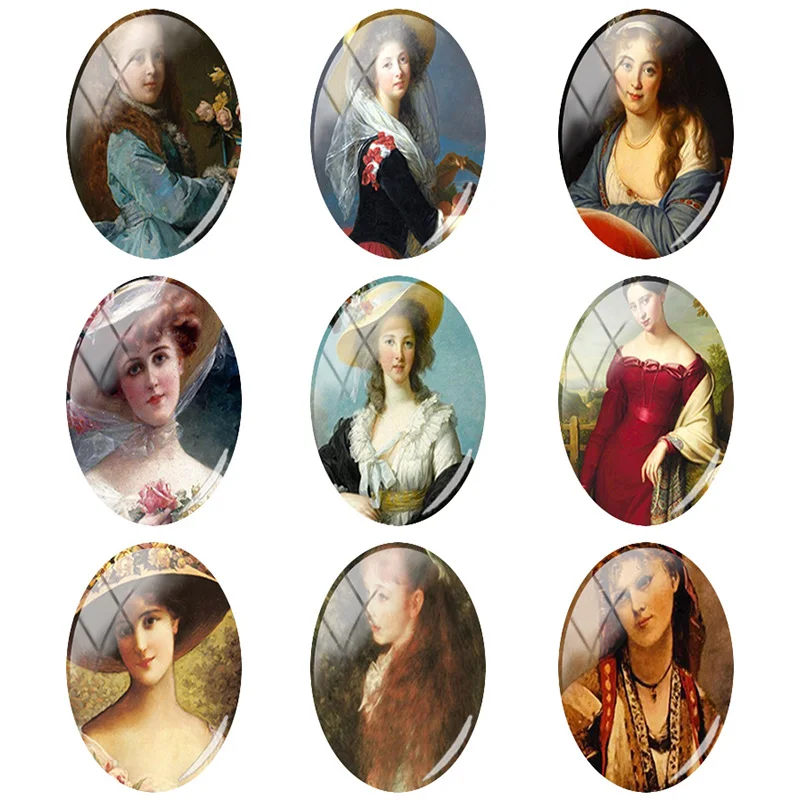 TAFREE Винтажный французский Женский портрет персонажа картина овальная 18x25 мм 5 шт./лот стеклянный кабошон плоская задняя часть ювелирных изделий PE01Изображения продуктов: