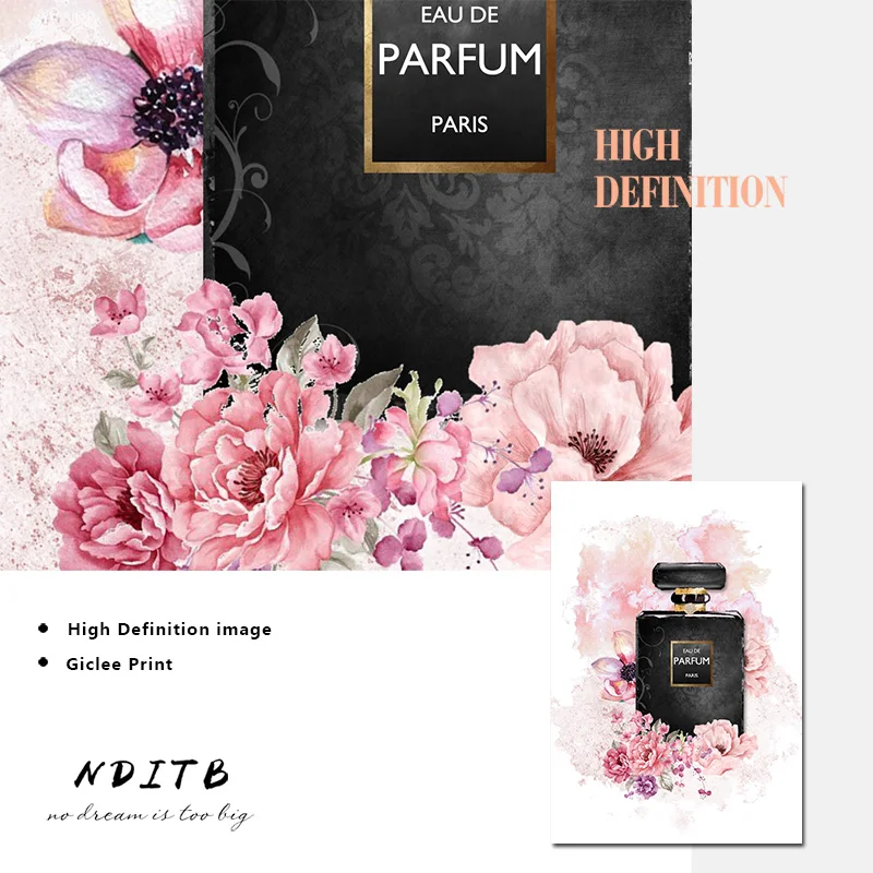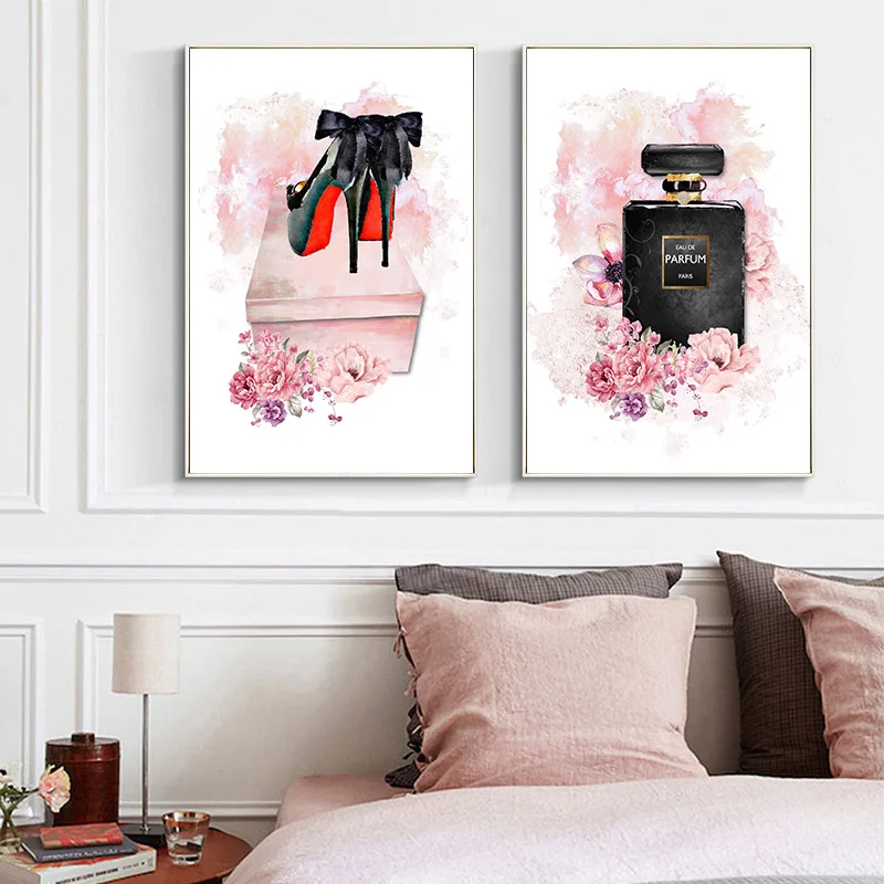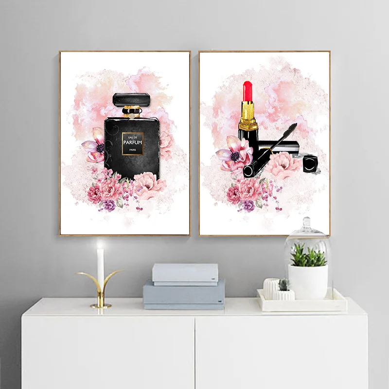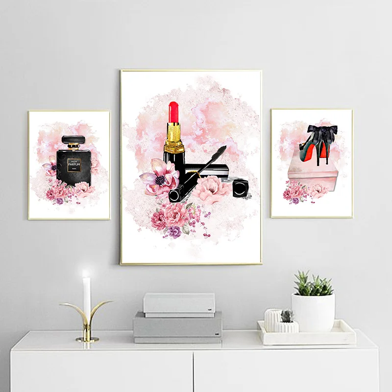 Картина на холсте, цветочный рисунок, губная помада, духи, модный художественный постер, макияж, холст, принт, Скандинавская Настенная картина, Современное украшение для комнаты для девочек