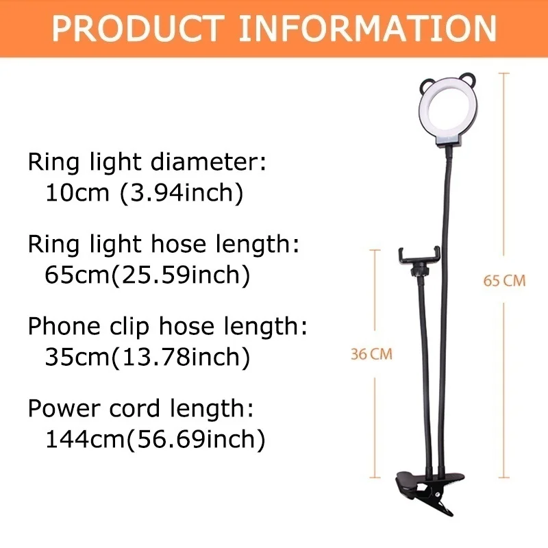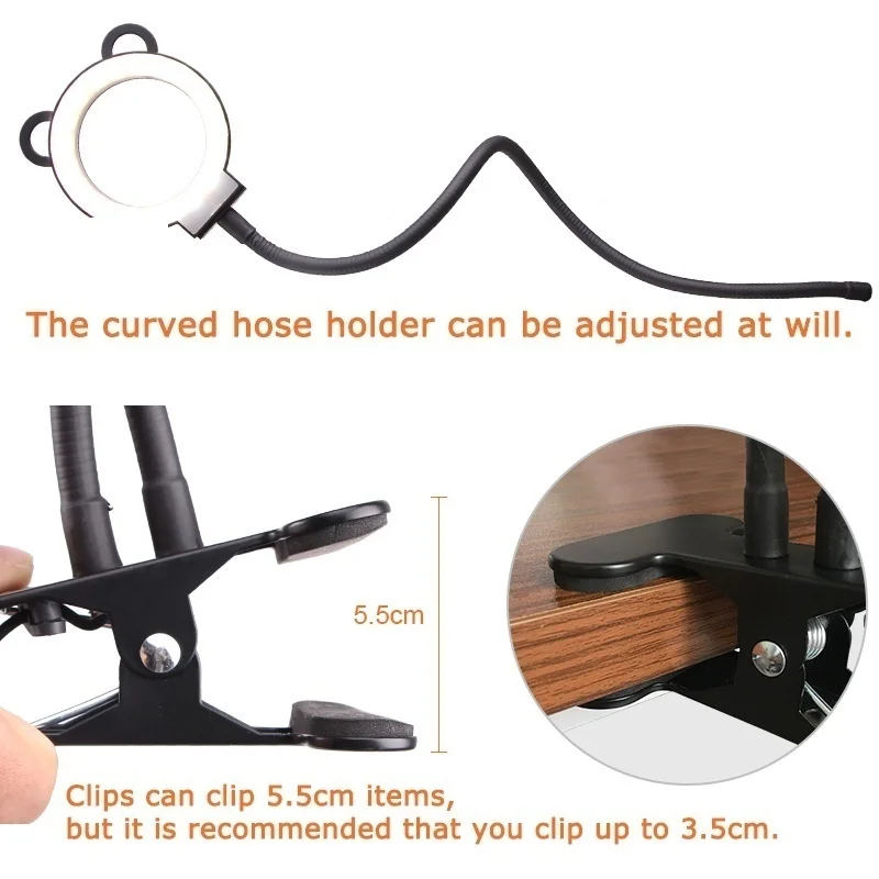 Кольцевой светильник для селфи со стандартным двойным шлангом, заполняющий кронштейн, ленивый кронштейн, лампа для чтения, прикроватная лампа