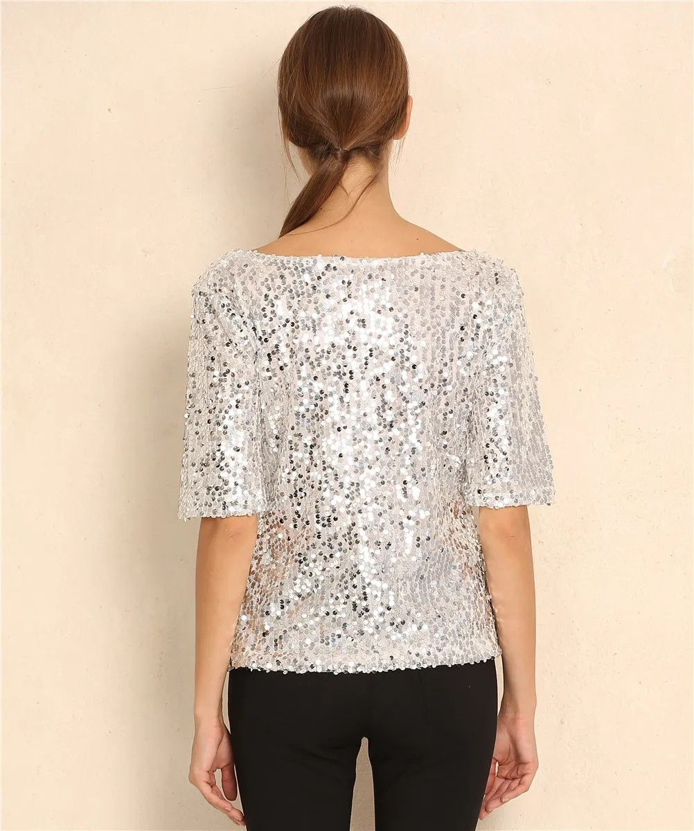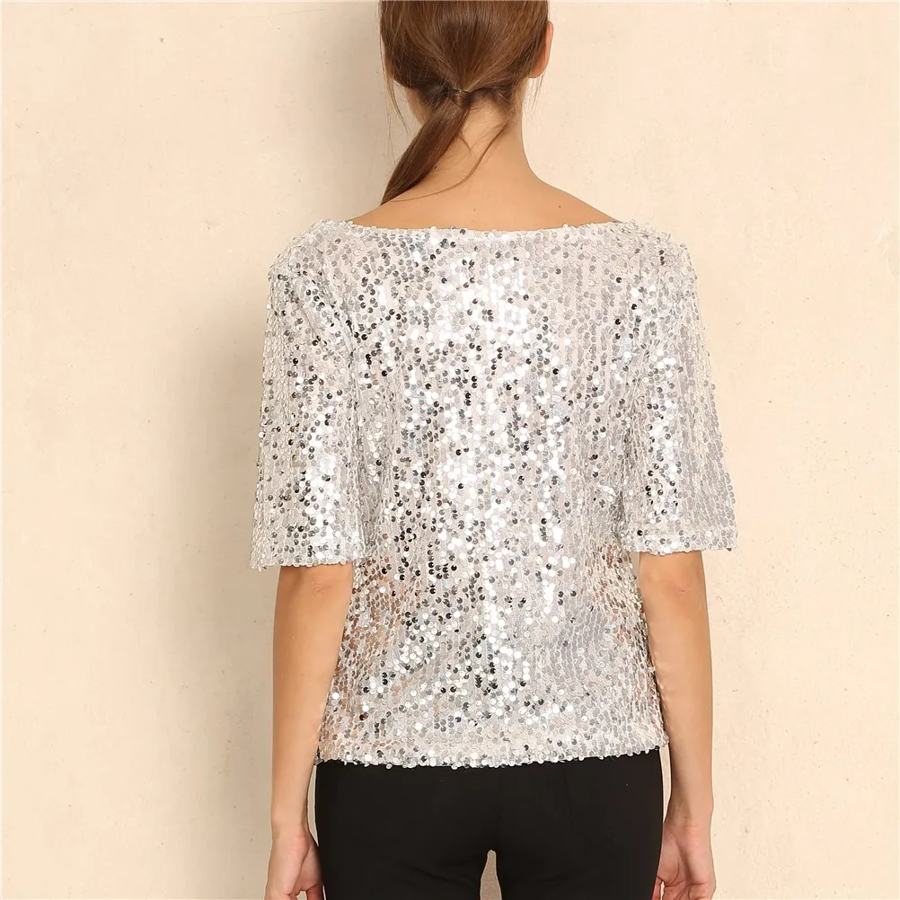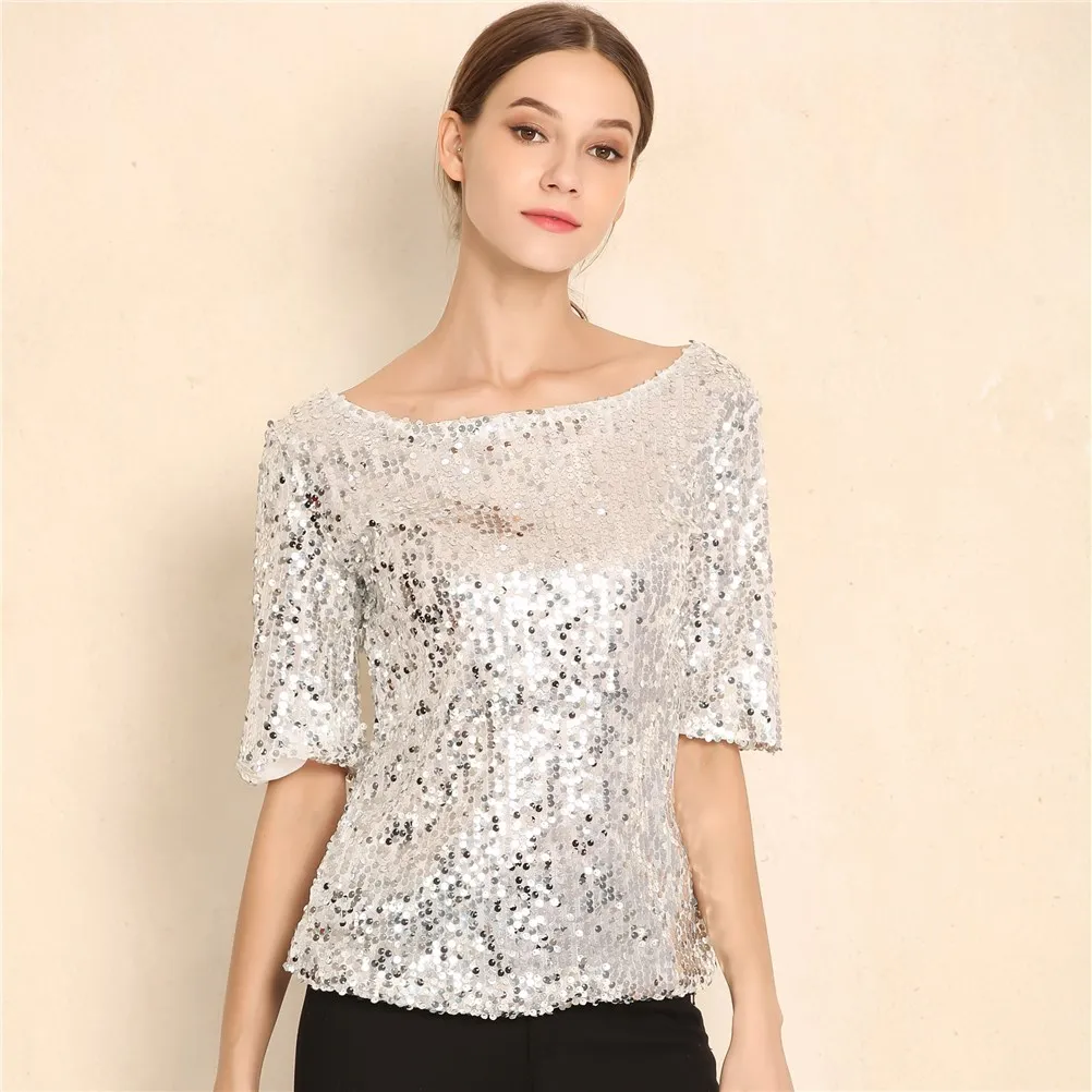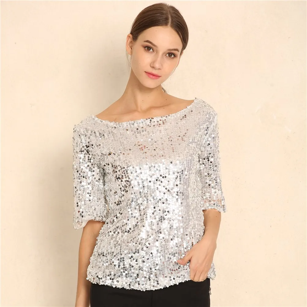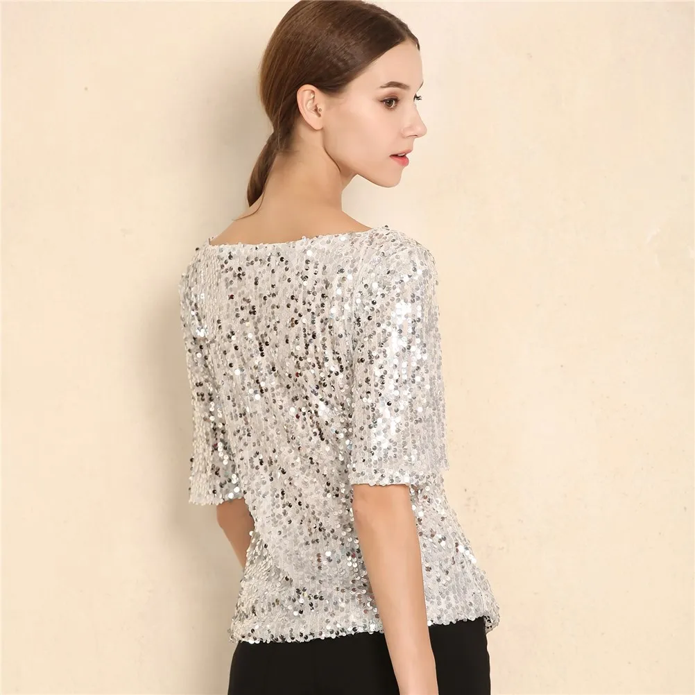 Новинка, Женские топы и блузки с блестками, вышивка, пятиконечный рукав, Свободная блузка, Повседневная рубашка, размера плюс, S-5XL