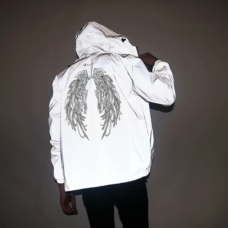 Куртка мужская и женская Светоотражающая, светящаяся в темноте, ветровка с капюшоном, 2021